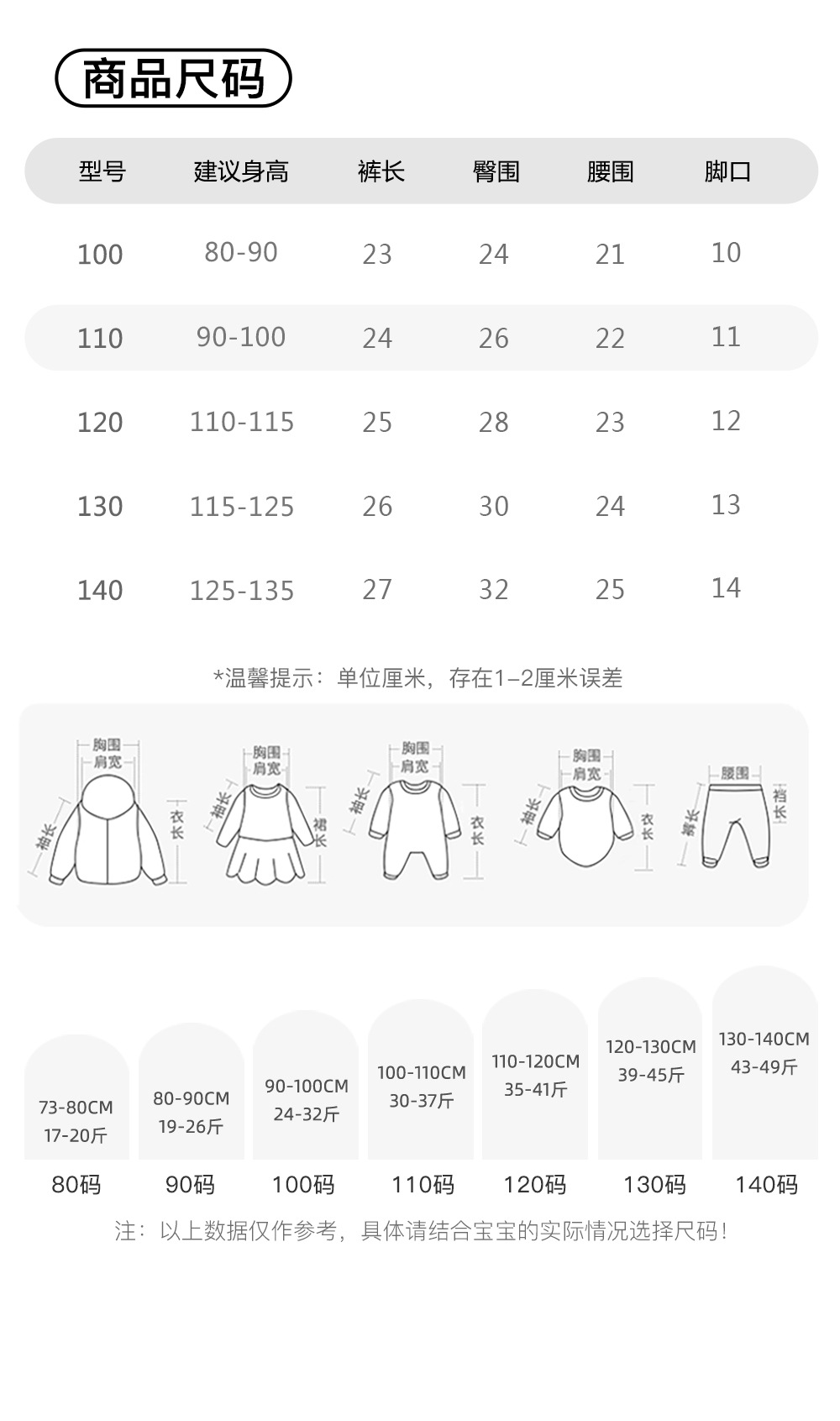 Children (3~8 years old, 100~140cm)