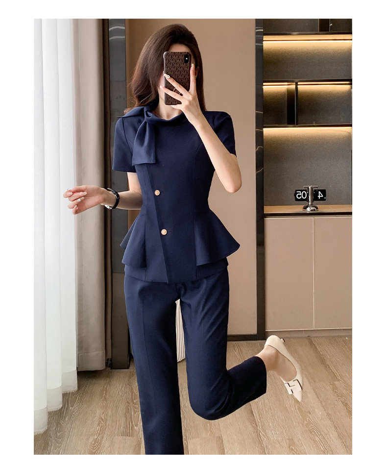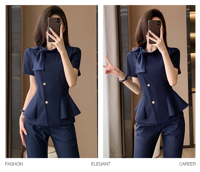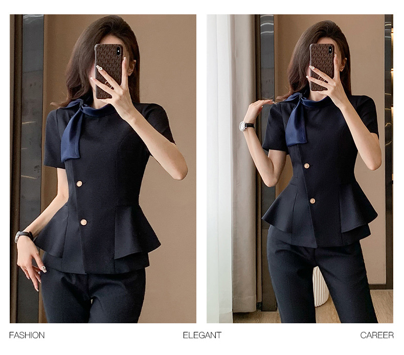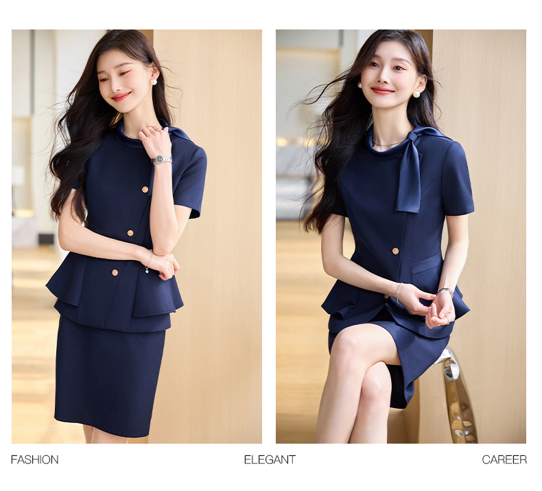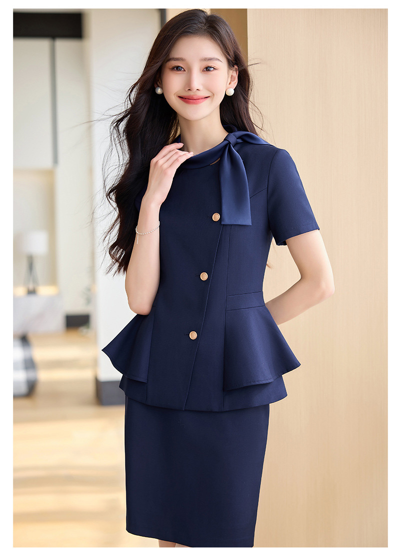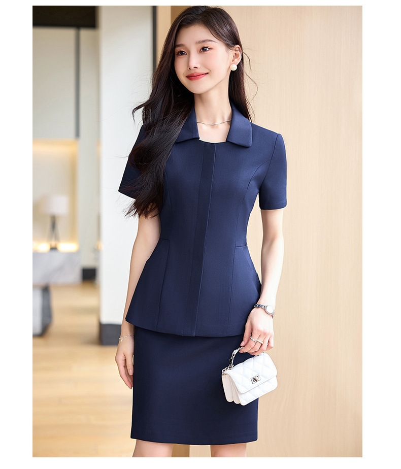 Hotel Front Desk Tooling Summer Blue Short-sleeved Suit Female Temperament Jewelry Shop Beauty Salon Consulting Work Clothes