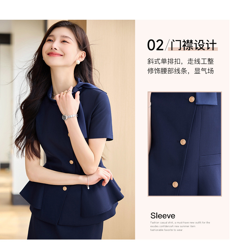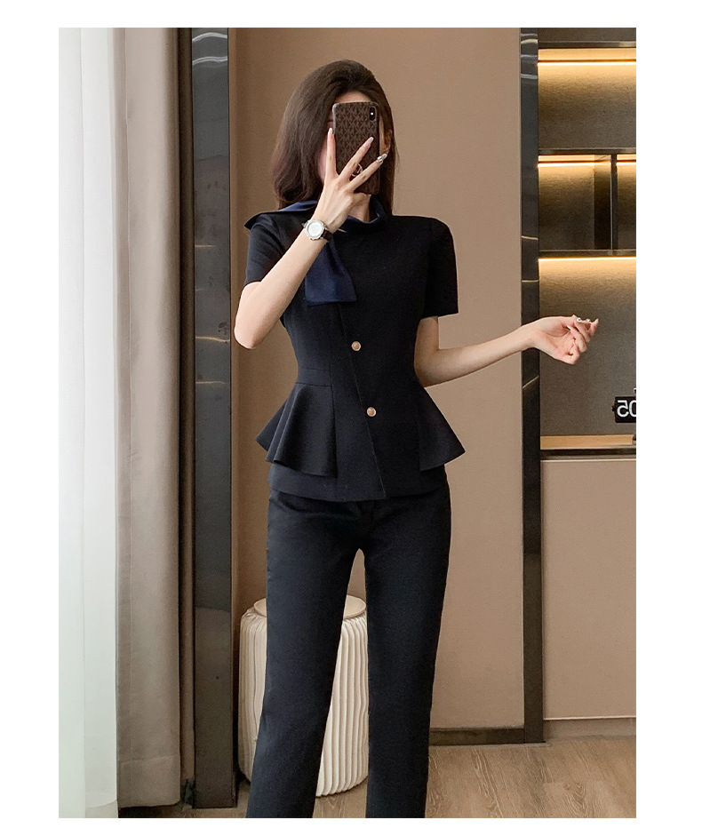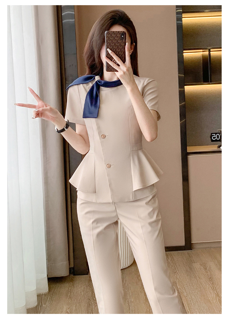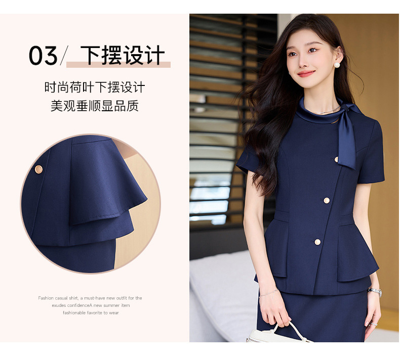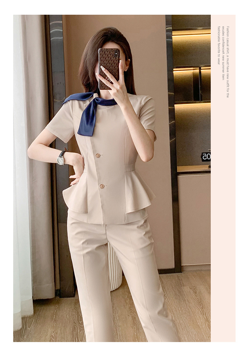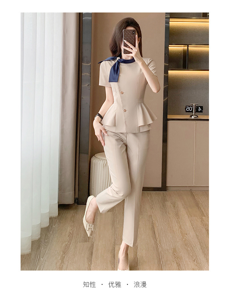 Hotel Front Desk Tooling Summer Blue Short-sleeved Suit Female Temperament Jewelry Shop Beauty Salon Consulting Work Clothes