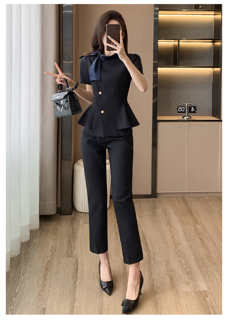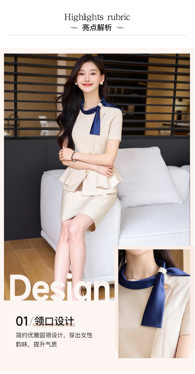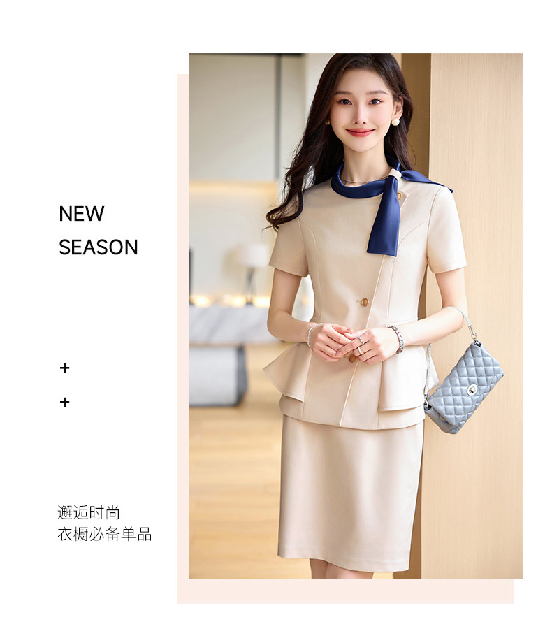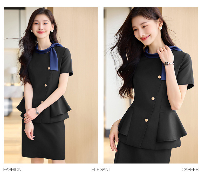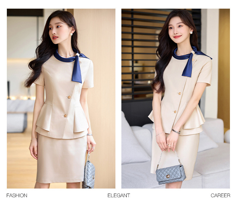 Hotel Front Desk Tooling Summer Blue Short-sleeved Suit Female Temperament Jewelry Shop Beauty Salon Consulting Work Clothes