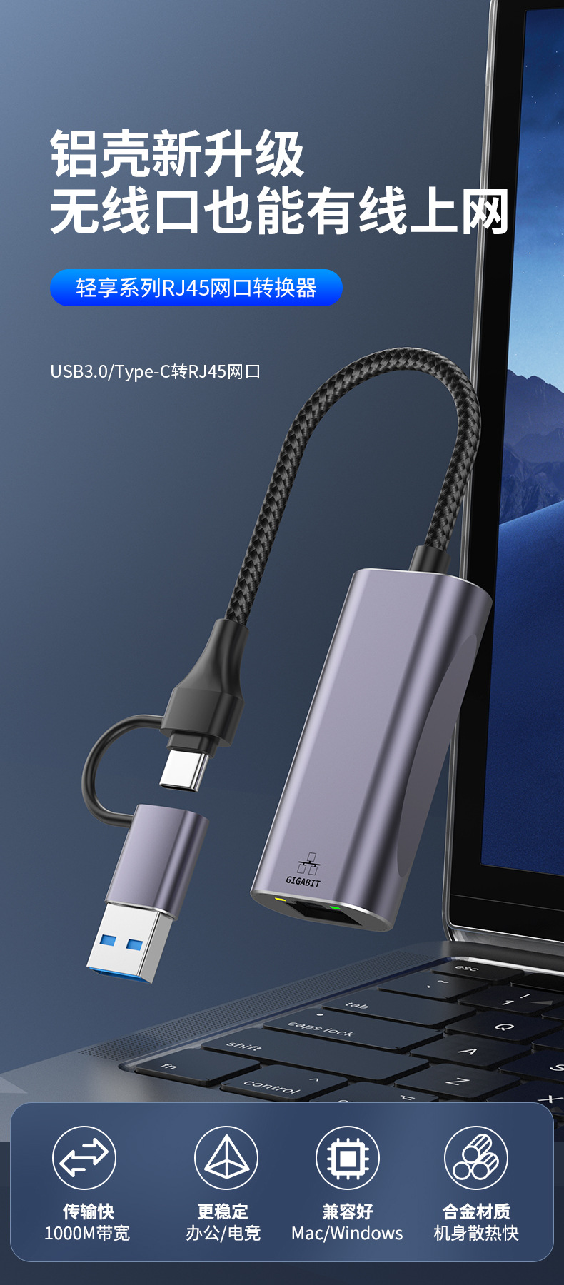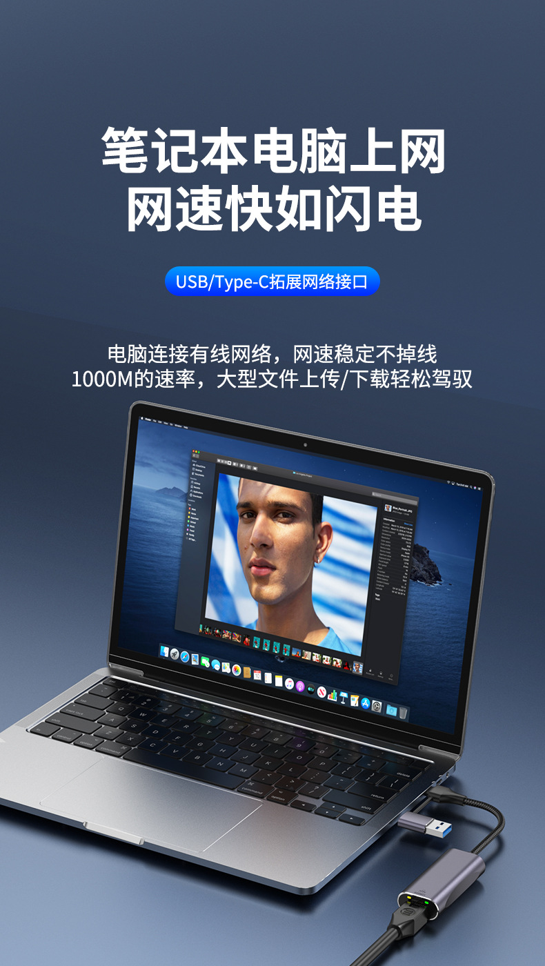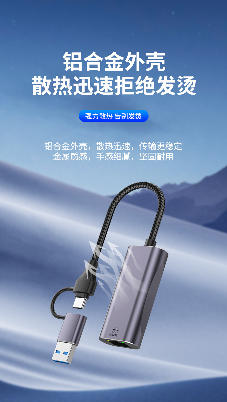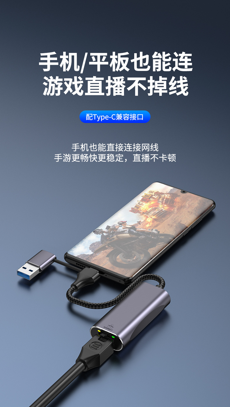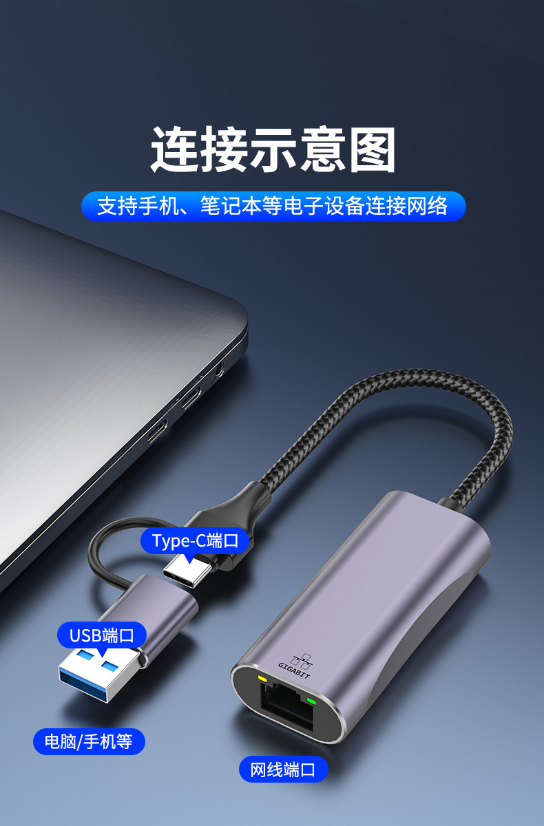 USB to network cable interface Gigabit network card RJ45 Ethernet Type-c interface computer tablet phone