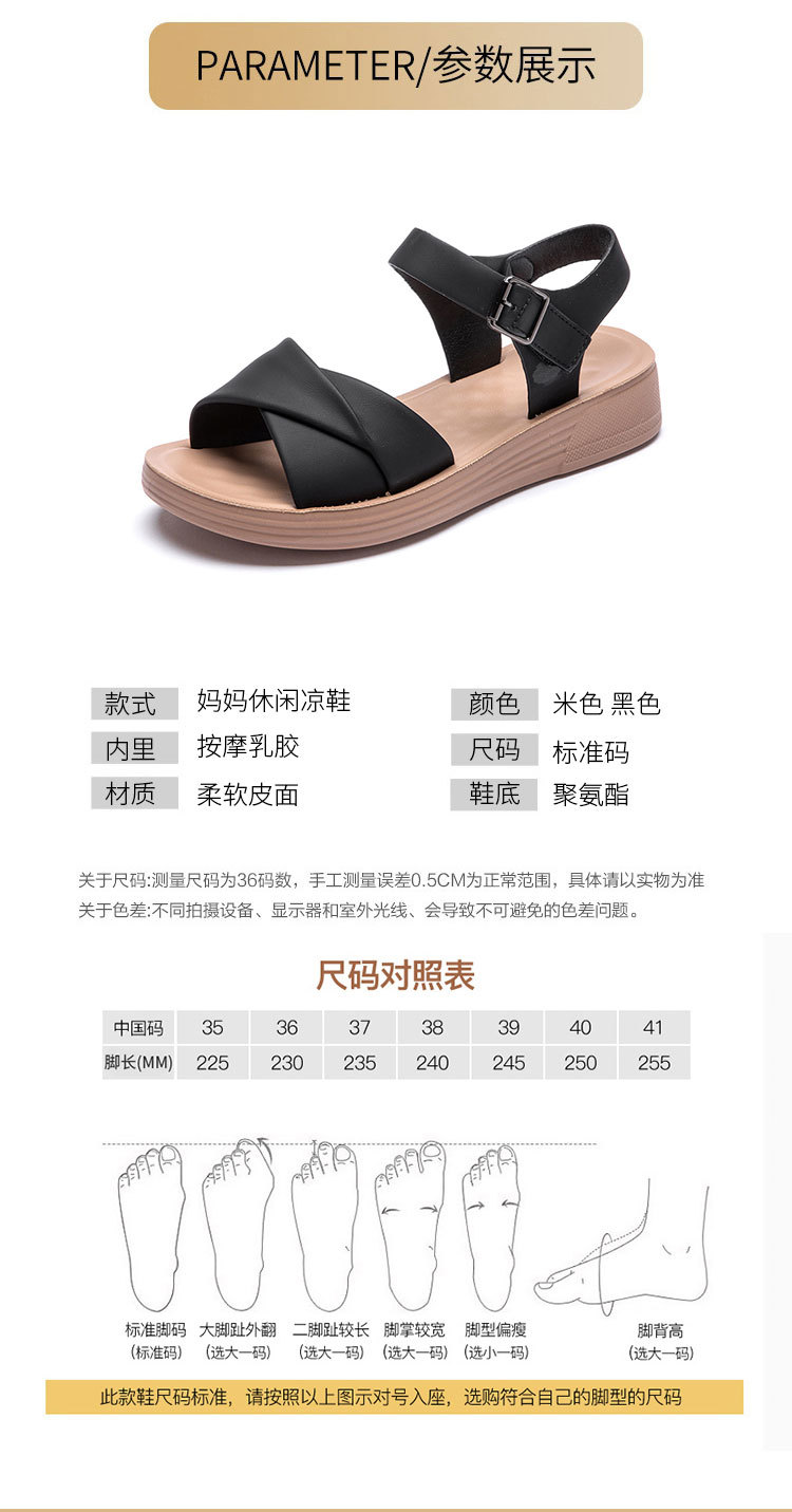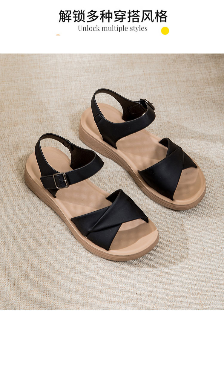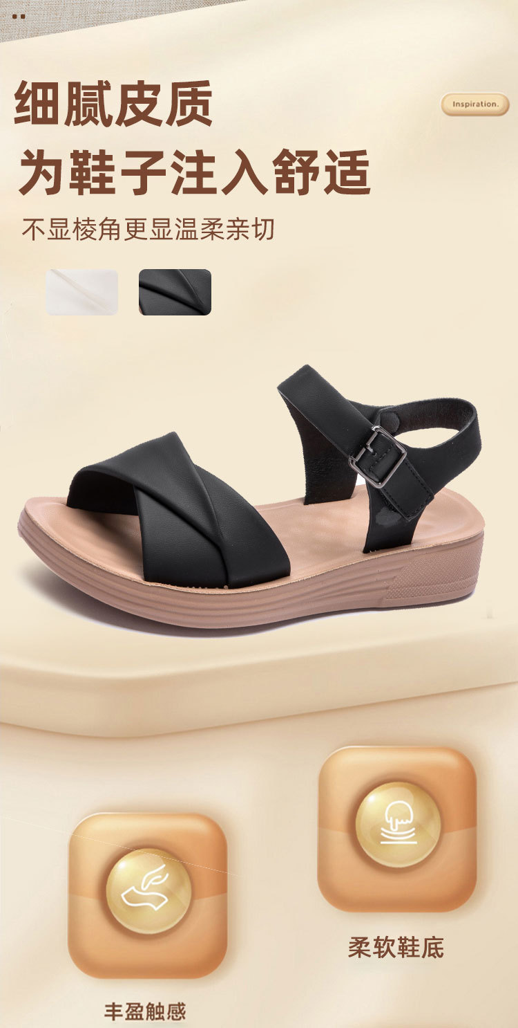 Choice Genuine Leather Mom Shoes Sandals Soft Bottom Flat Middle-aged Women's Shoes Non-slip Comfortable Shoes Middle-aged Summer 2024 New Style