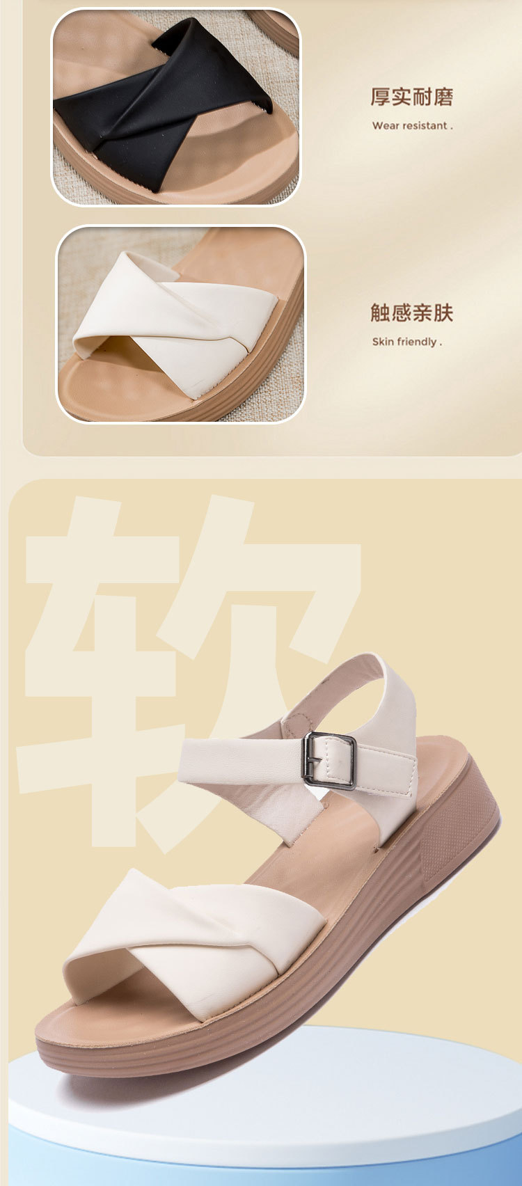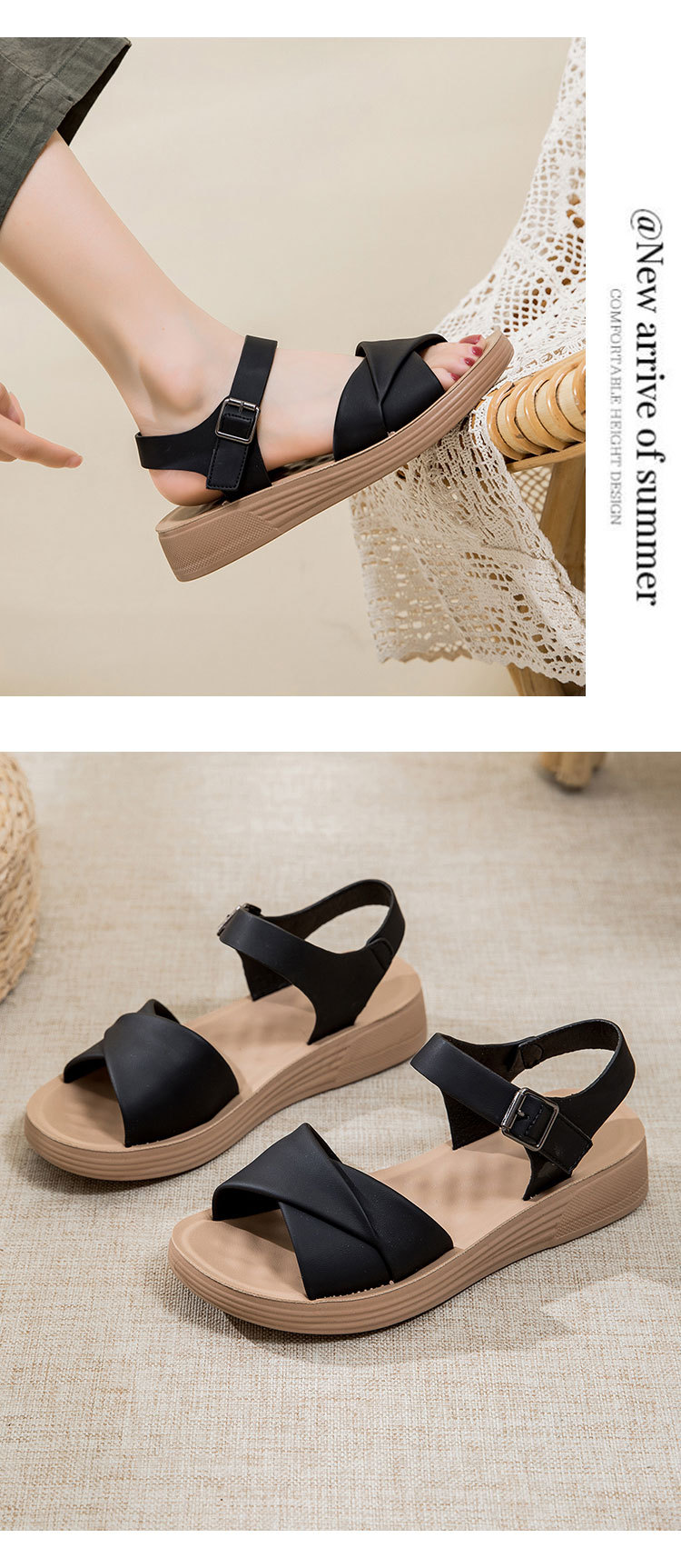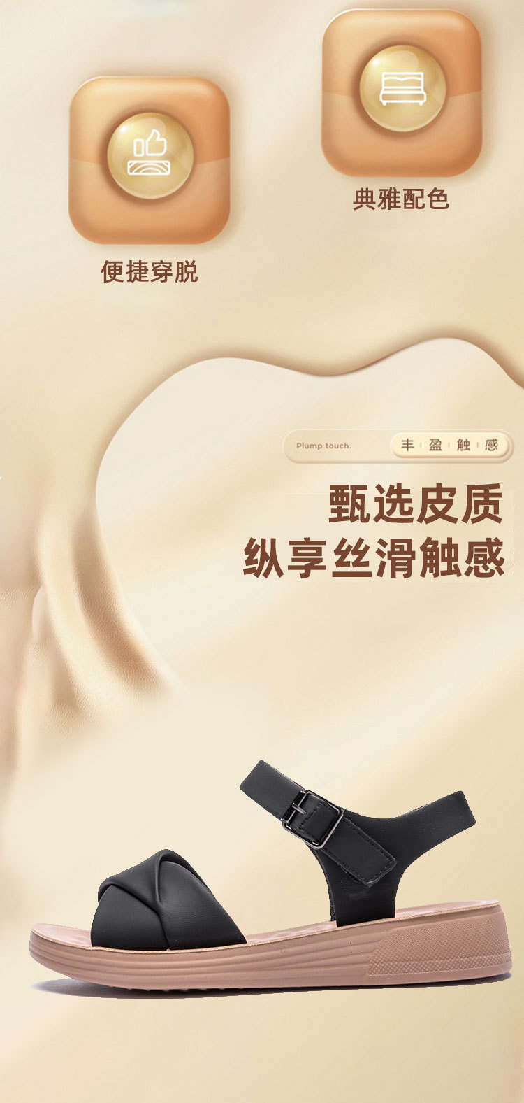 Choice Genuine Leather Mom Shoes Sandals Soft Bottom Flat Middle-aged Women's Shoes Non-slip Comfortable Shoes Middle-aged Summer 2024 New Style