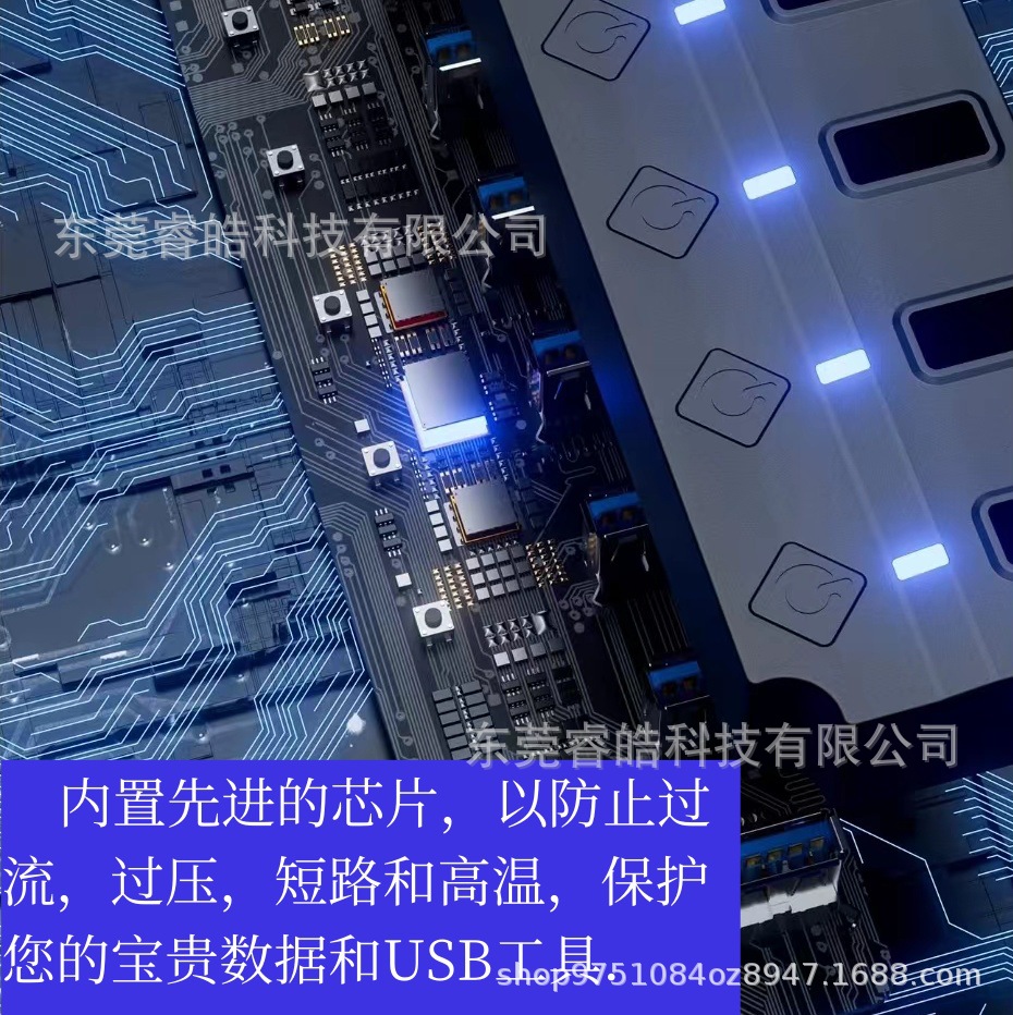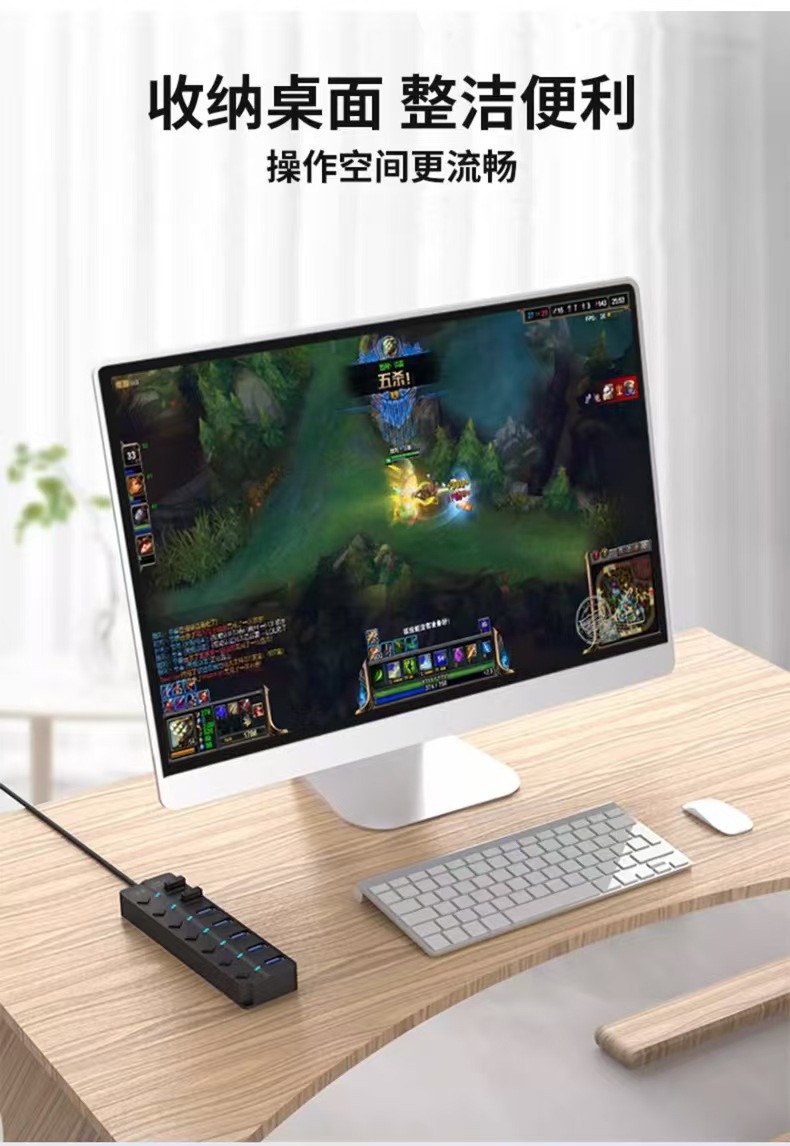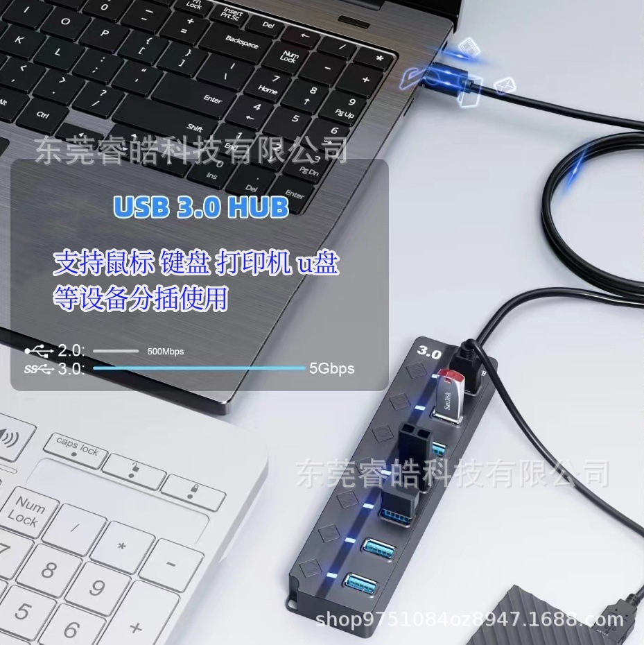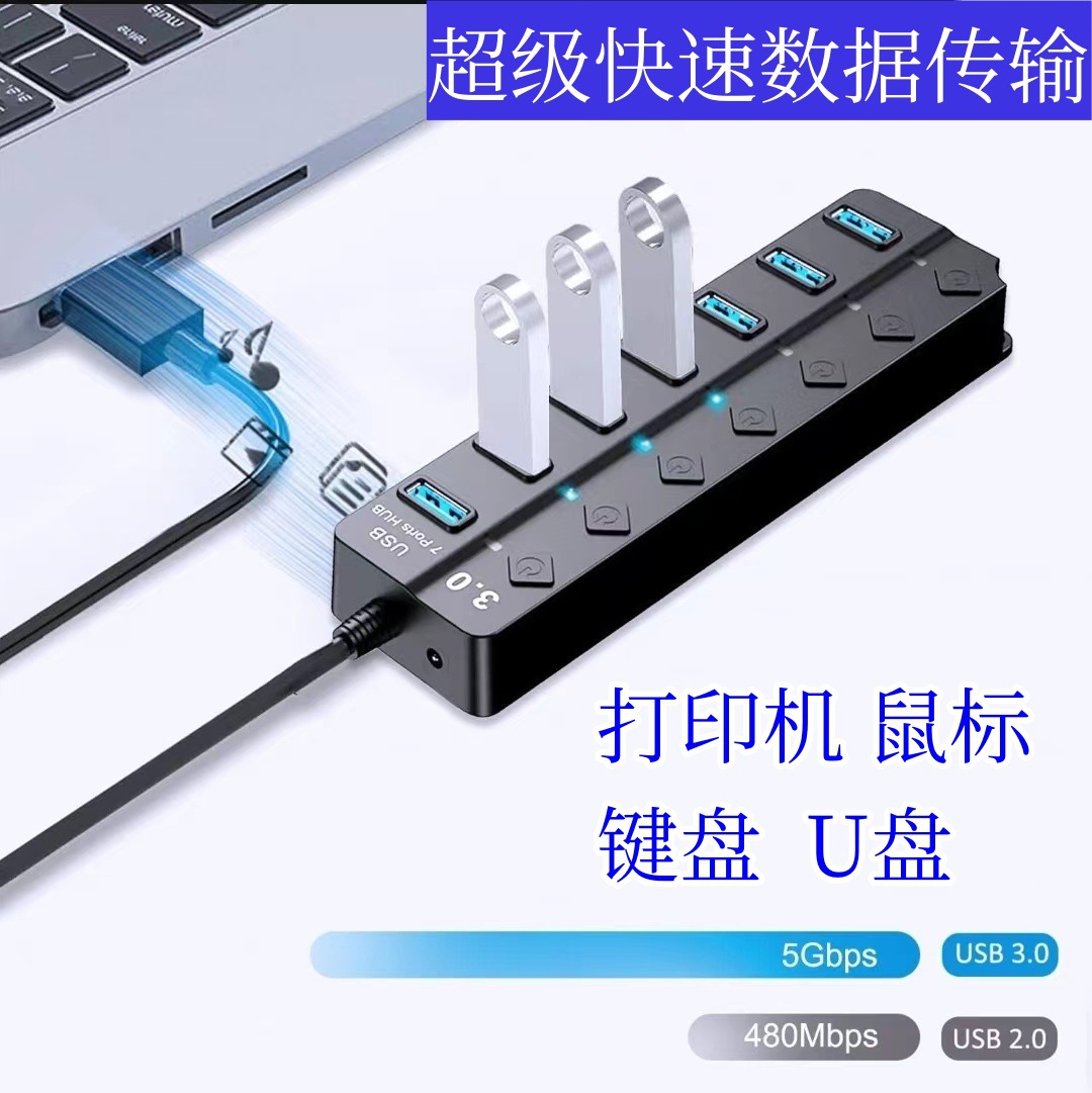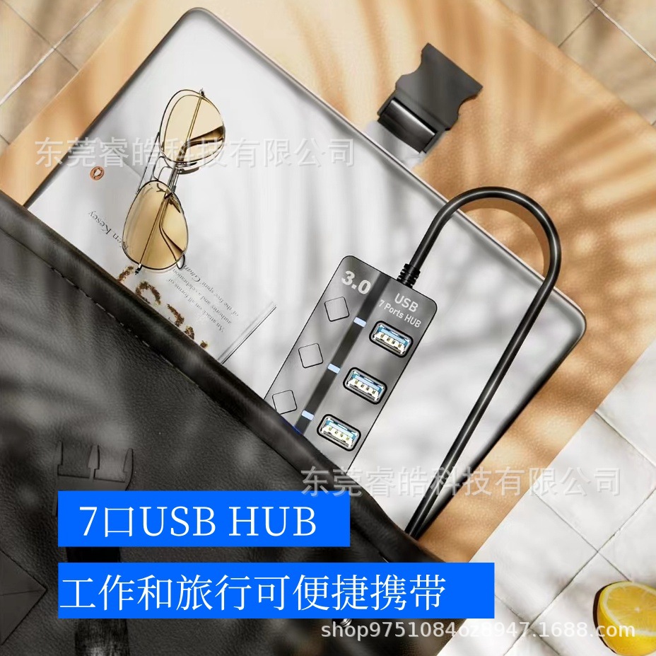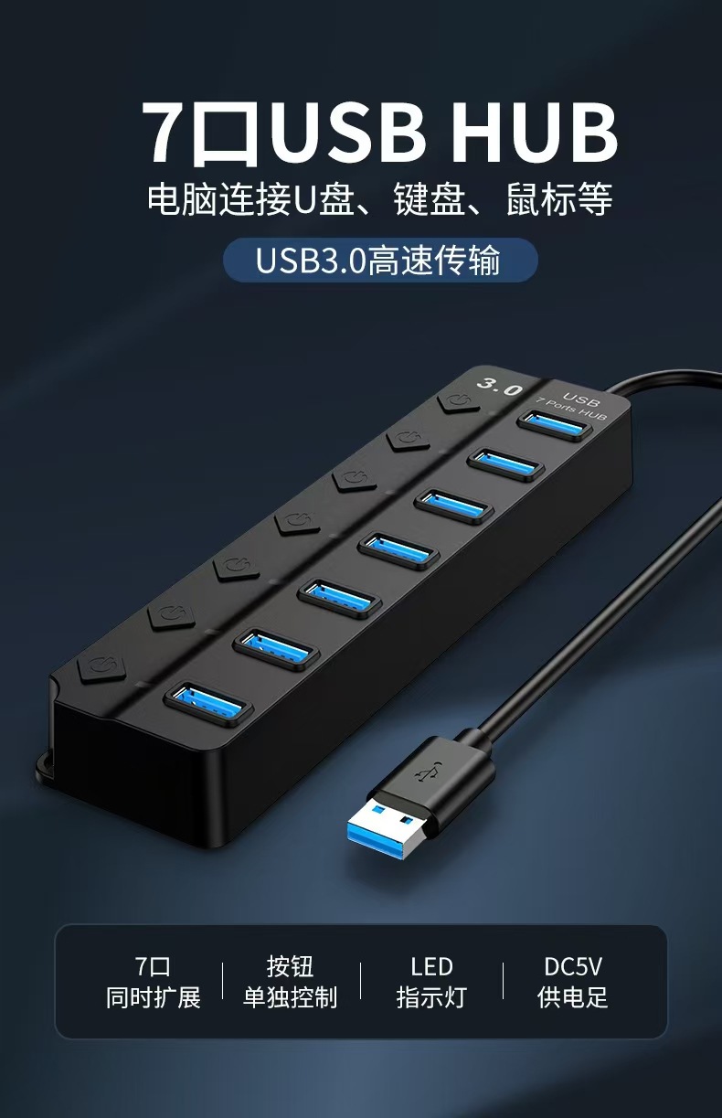 Seven-Port USB 3.0 Hub, One-To-Seven High-Speed Expansion, Seven-Port Button Splitter
