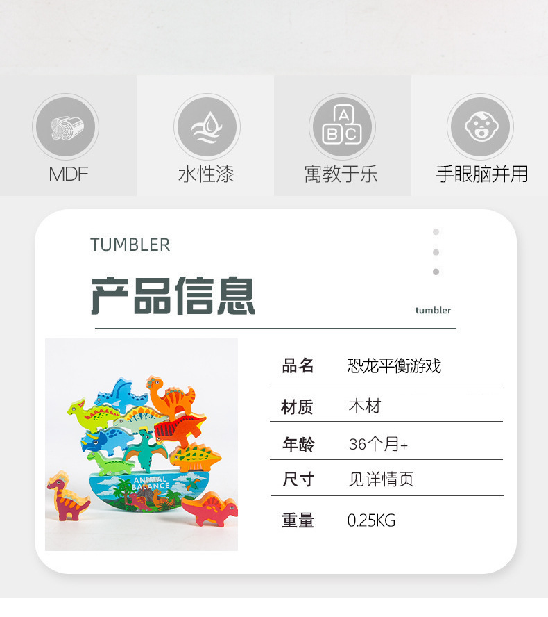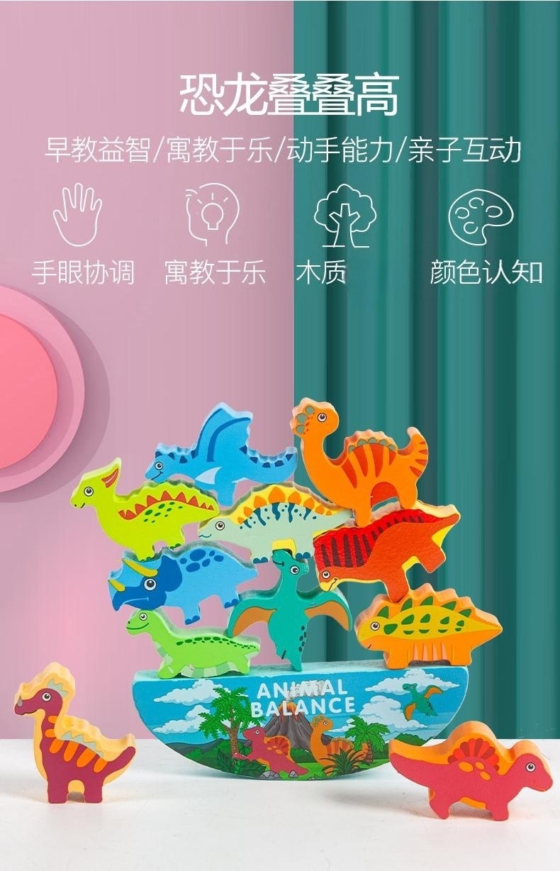 Cross-Border Wholesale Early Childhood Education Educational Dinosaur Balance Stacking Building Blocks Stacking Circle Puzzle Toys