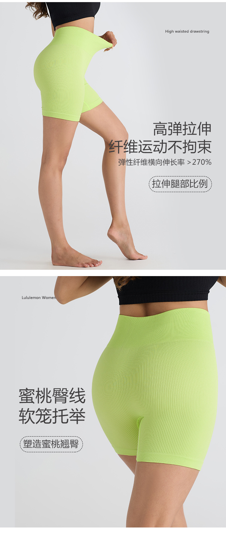 Seamless Thread Elastic Tight Three-point Pants European and American Fitness Sports Hip Yoga Pants Riding Pants Women's Summer Outer Wear