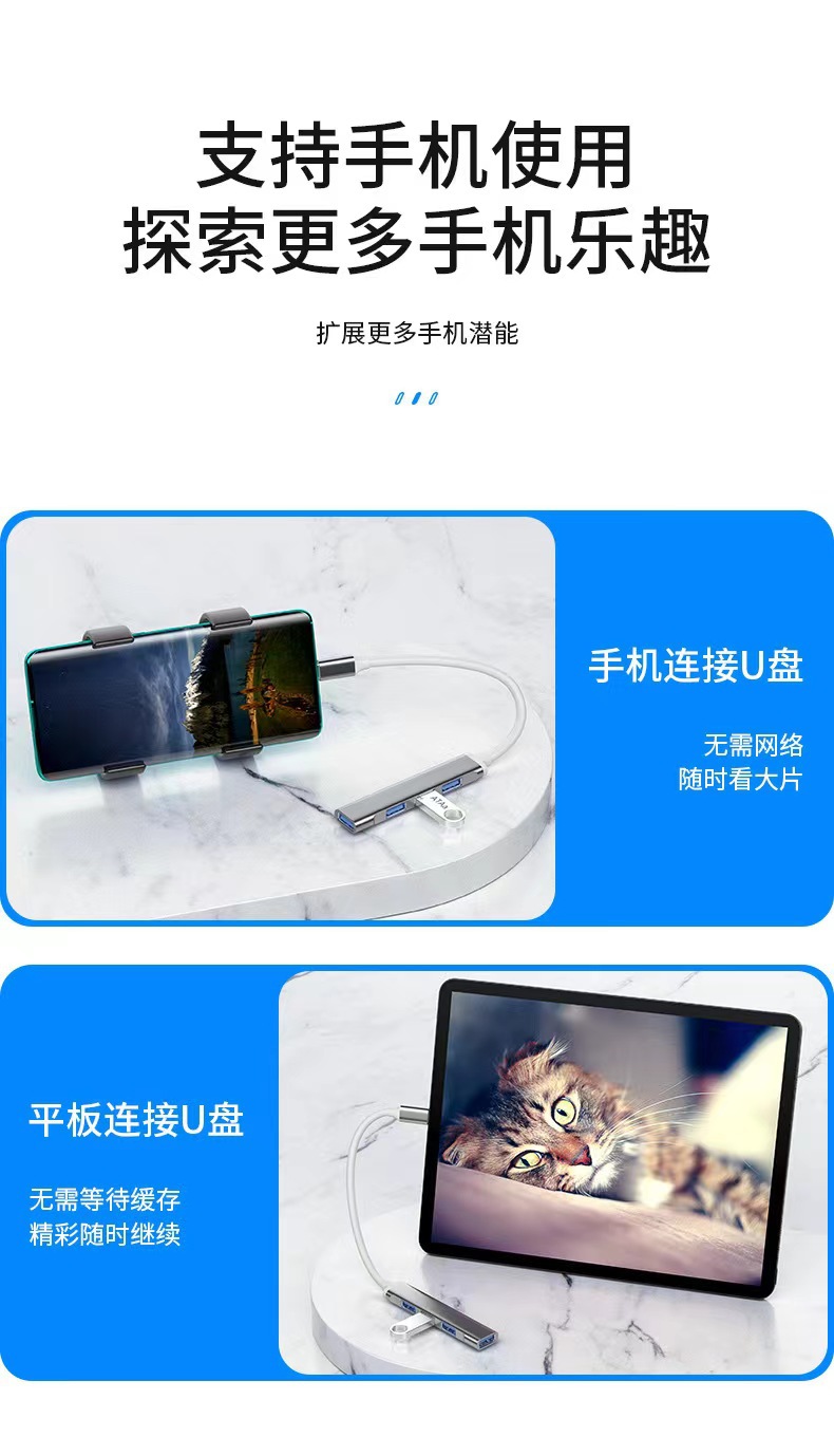 3.0Usb Splitter Expansion Dock Usbhub Hub Aluminum Alloy Multi-Interface USB Splitter Docking Station