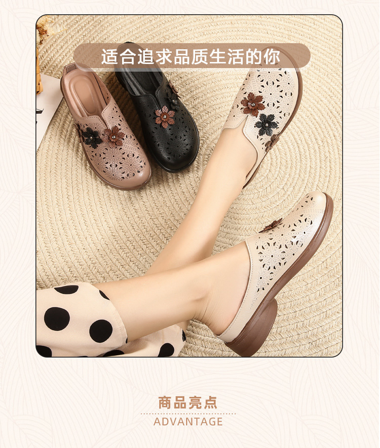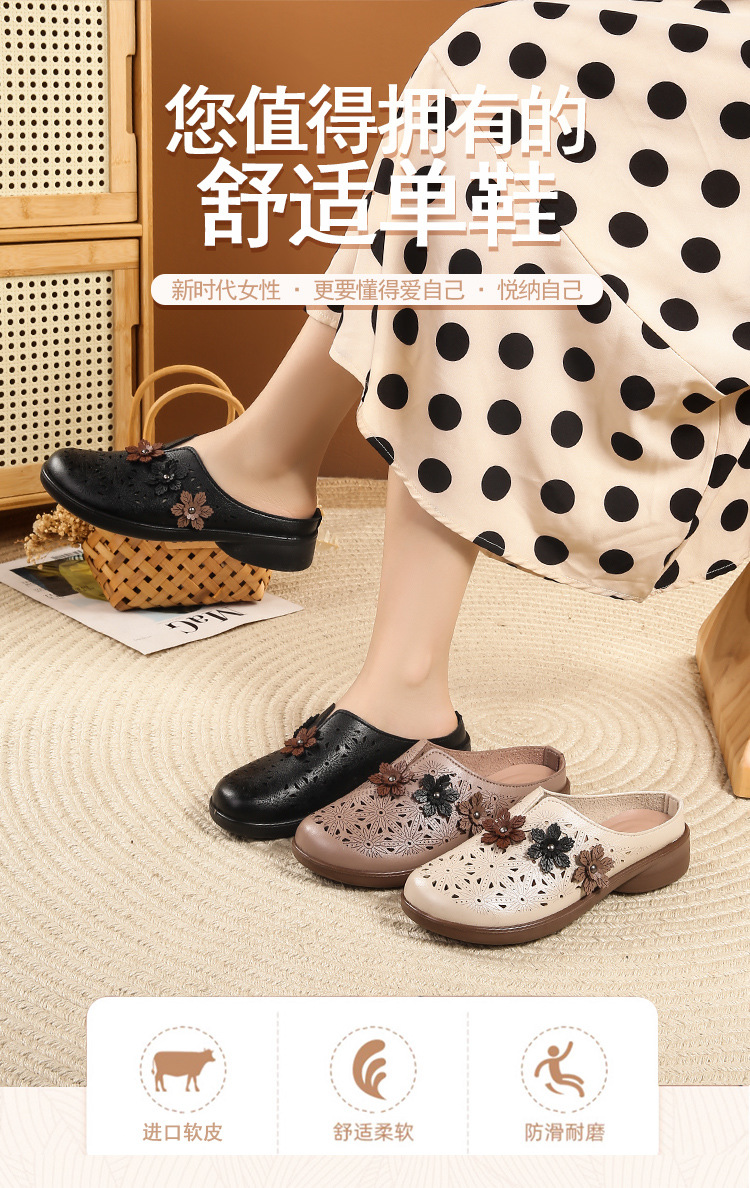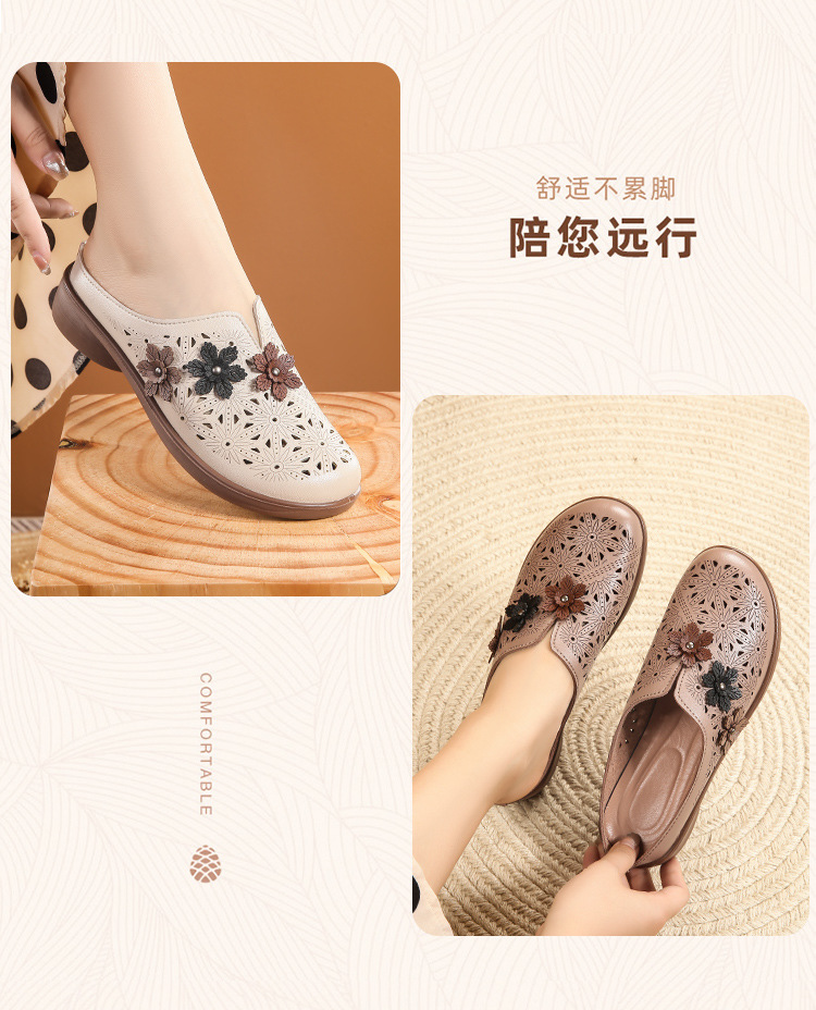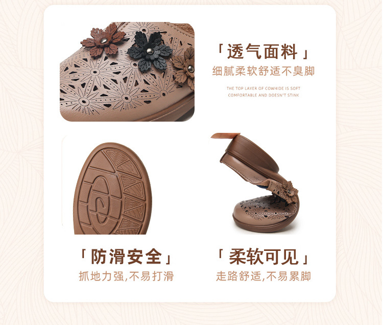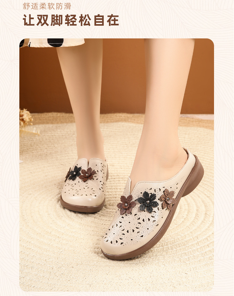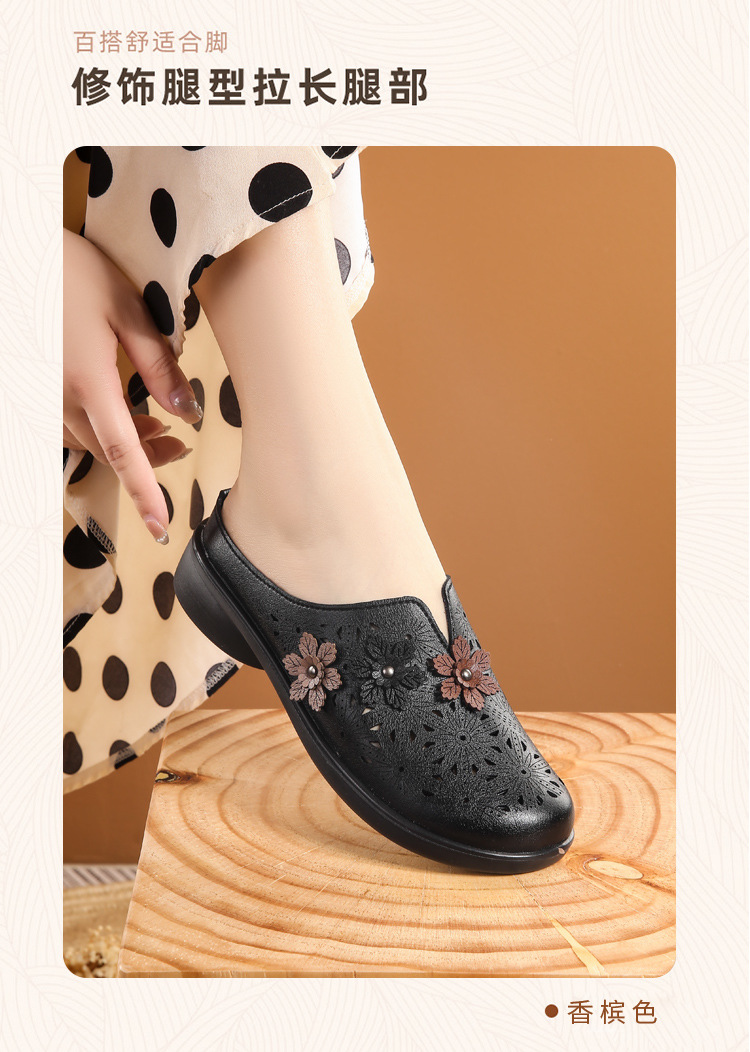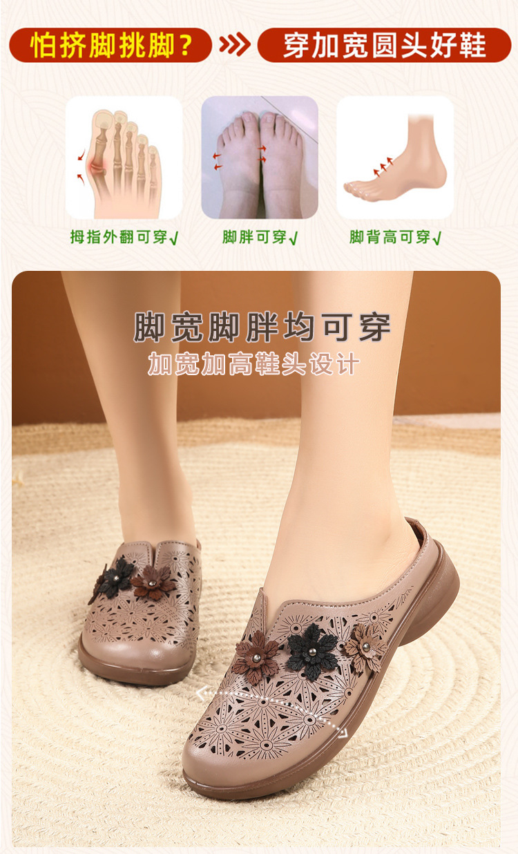 Choice In-Stock Mom Shoes, Non-Slip Soft Sole, Middle-Aged and Elderly Flat Sandals, Non-Slip Closed-Toe Outdoor Slippers for Women, Summer