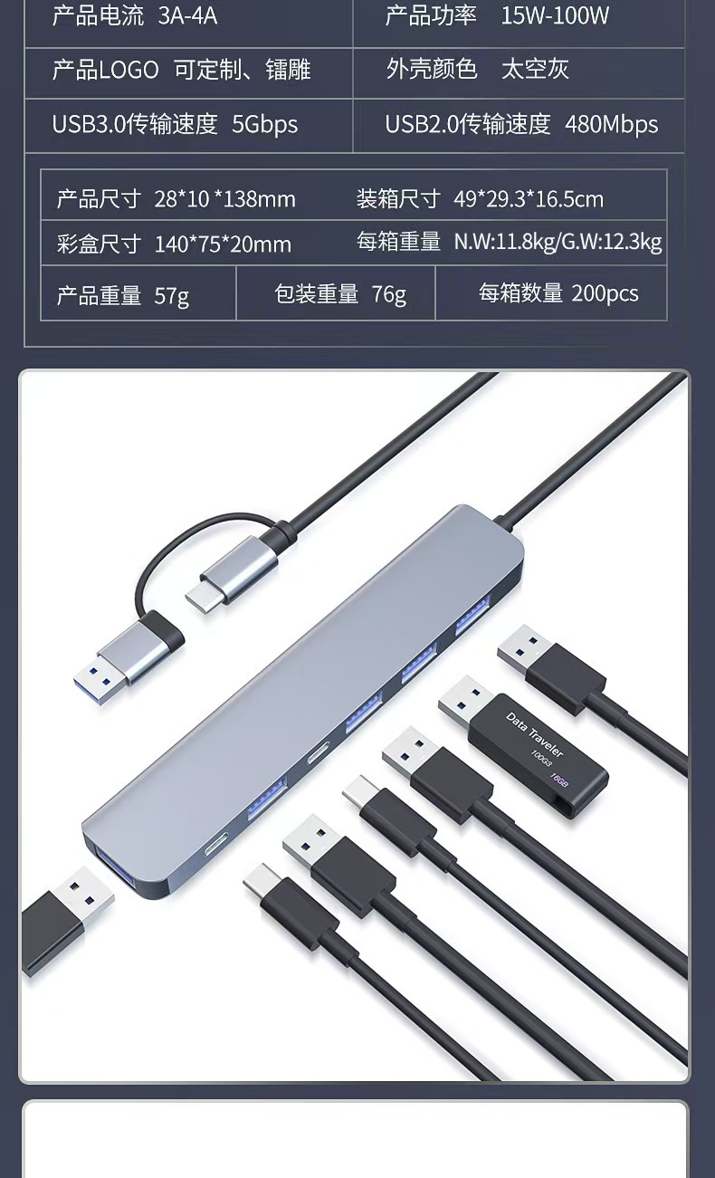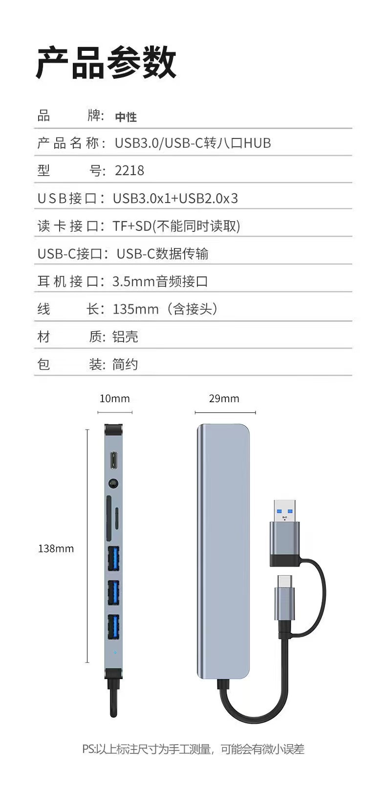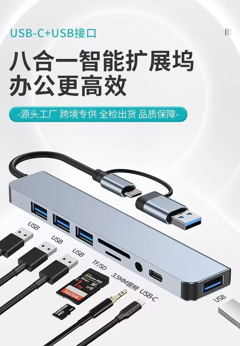 Dual-Head Eight-In-One Usb3.0 Cross-Border Docking Station Hub Multi-Interface Hub Splitter