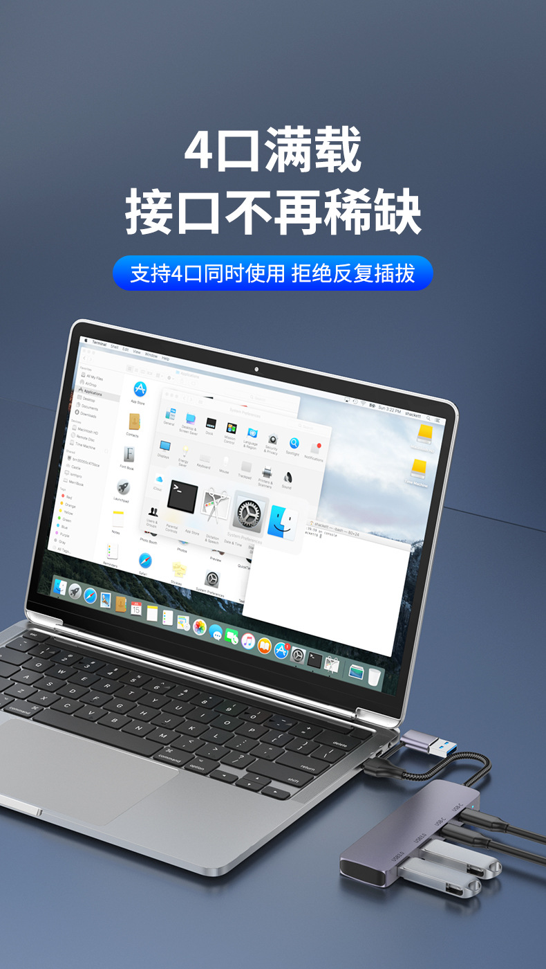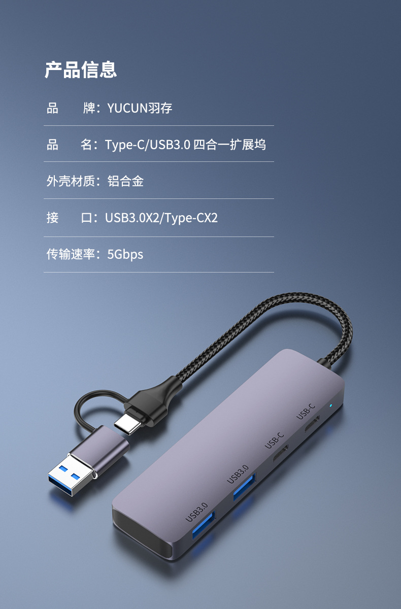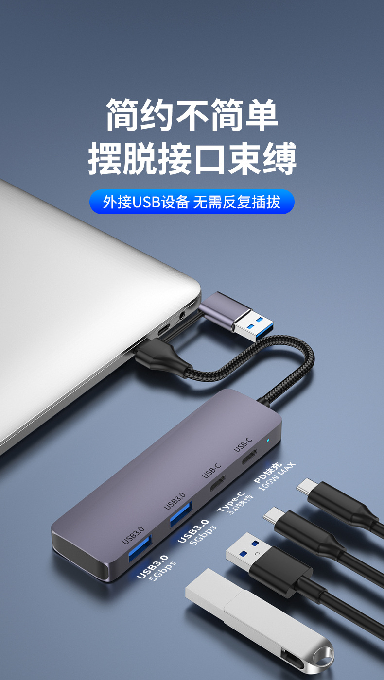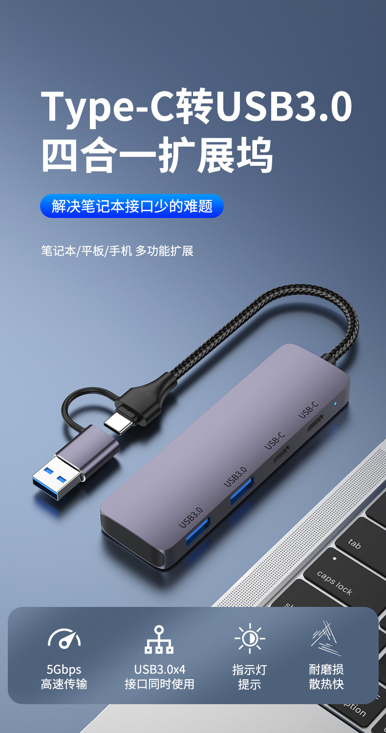 3.0HUB Hub typec Expansion Dock Four-port 2A2C Splitter High-speed Transmission Computer Peripheral General