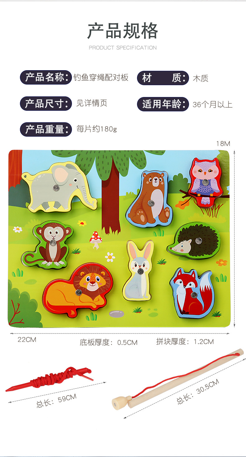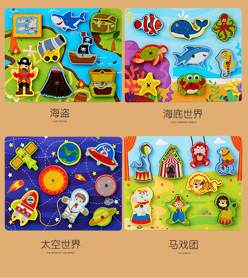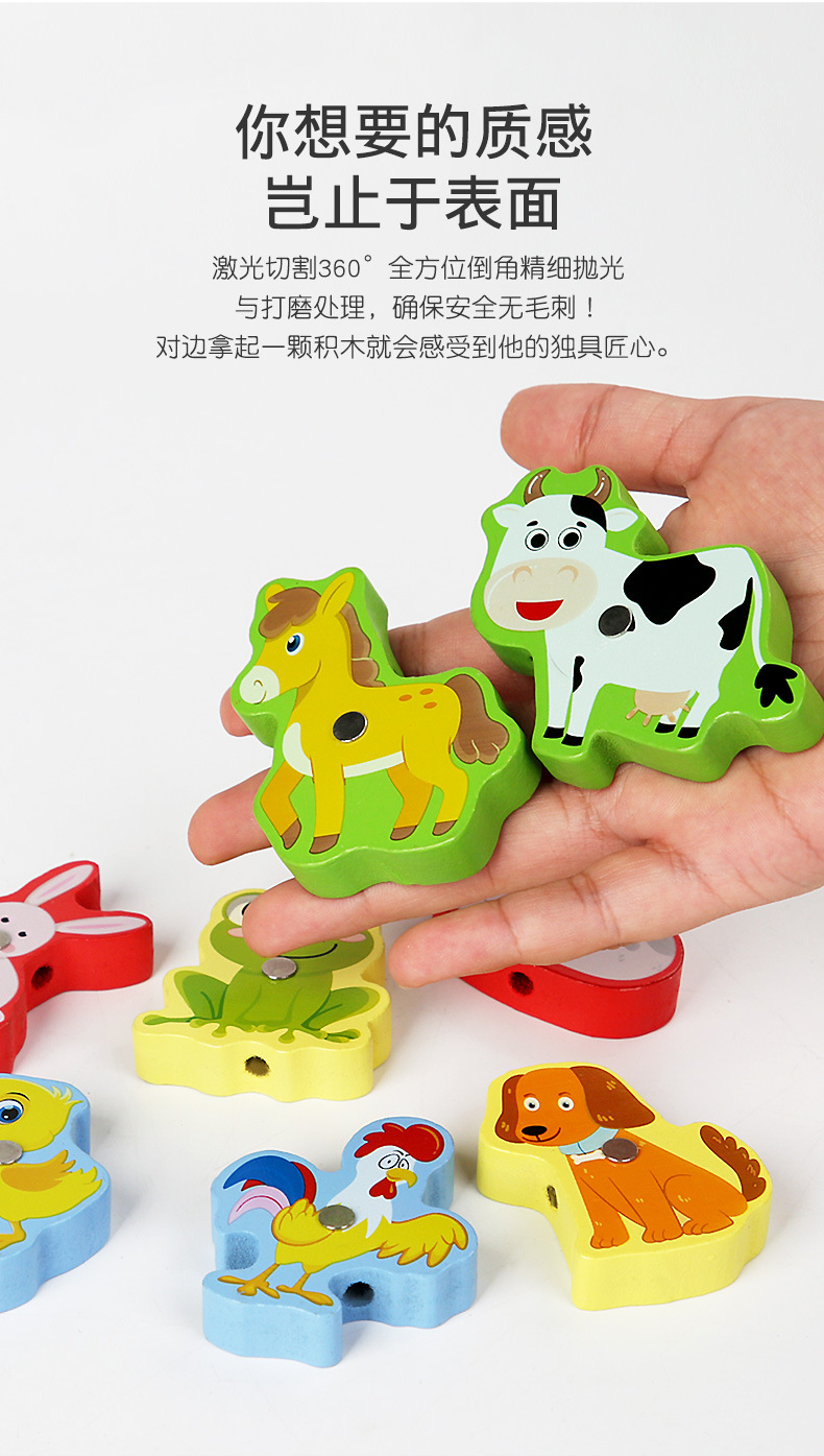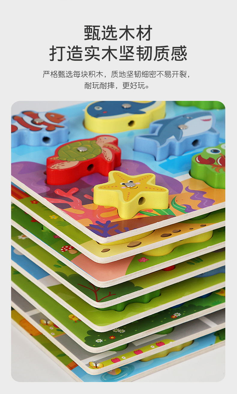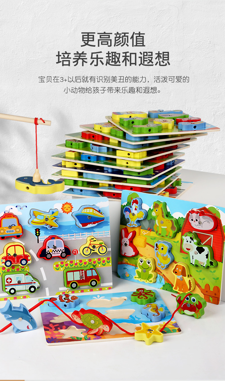 Cross-Border Wholesale Threading Fishing Puzzle Transportation Farm Forest Ocean Digital Puzzle Three-Dimensional Building Blocks Early Education Puzzle