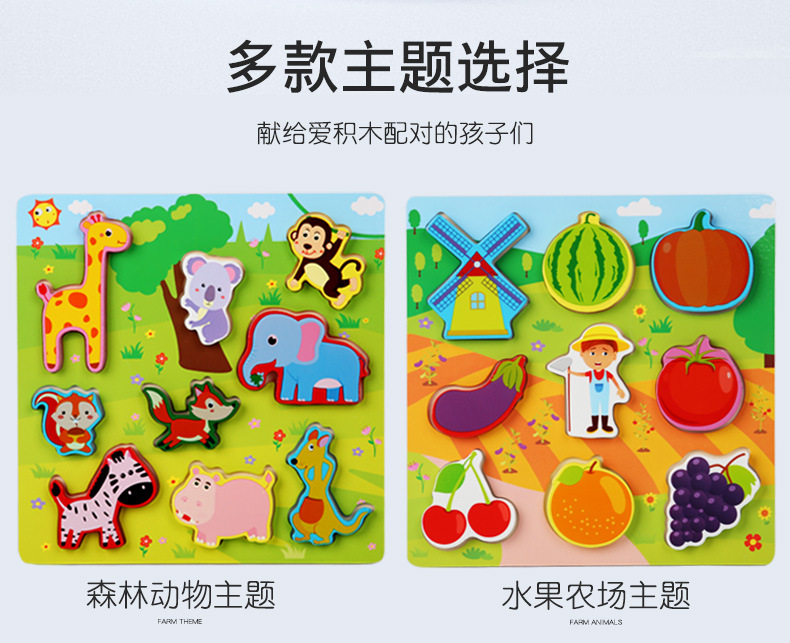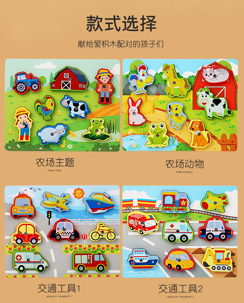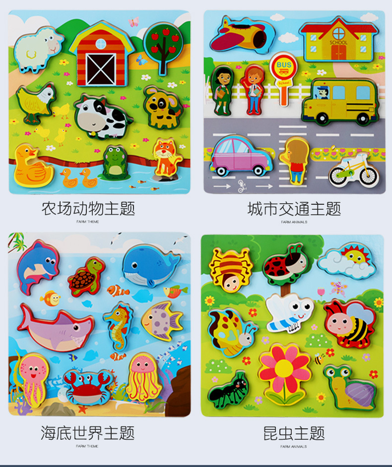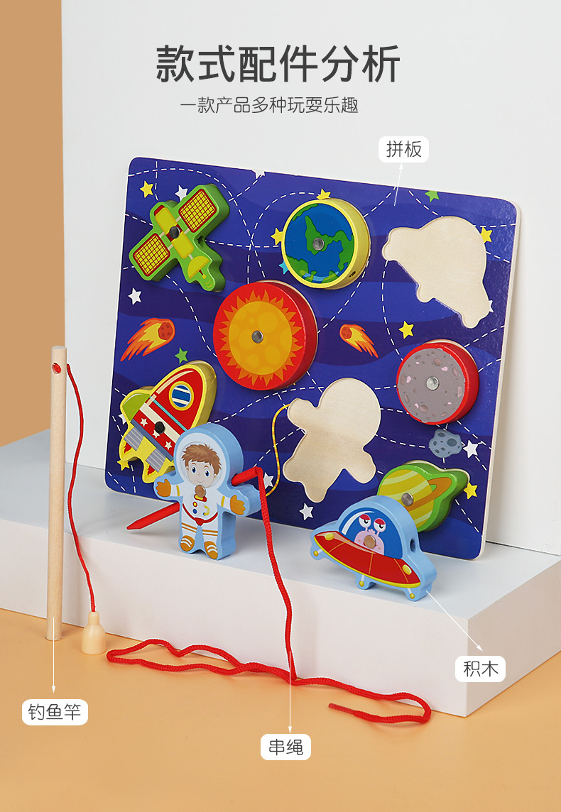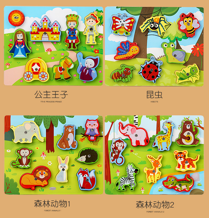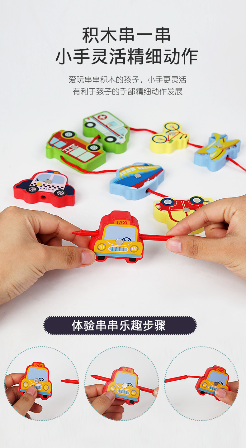 Cross-Border Wholesale Threading Fishing Puzzle Transportation Farm Forest Ocean Digital Puzzle Three-Dimensional Building Blocks Early Education Puzzle