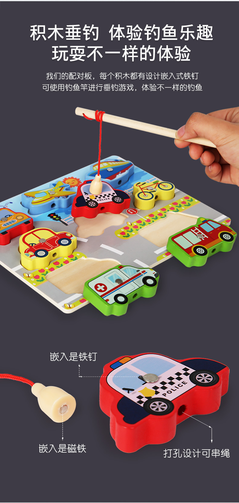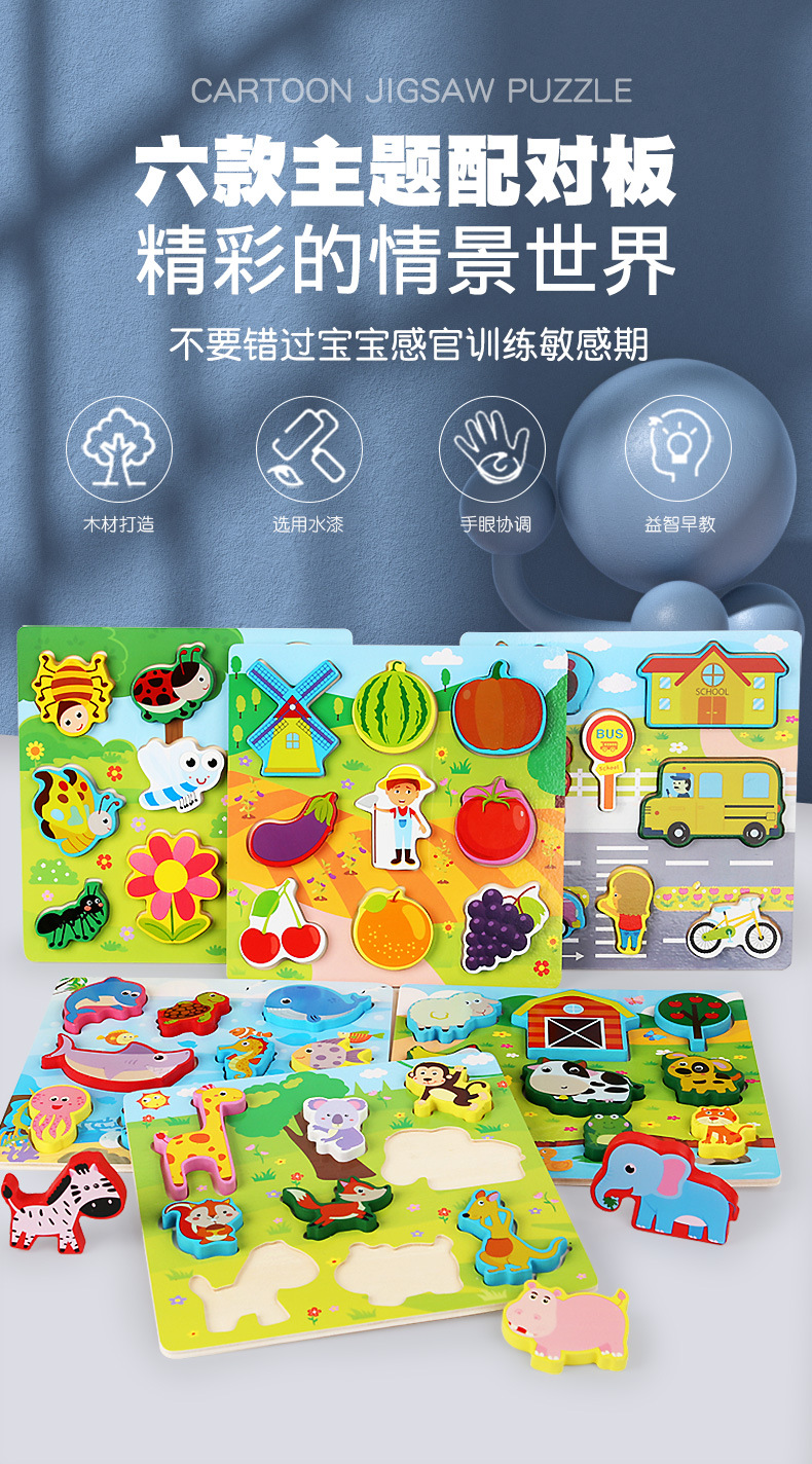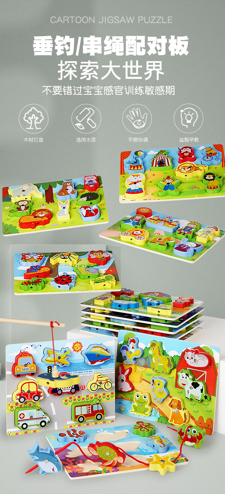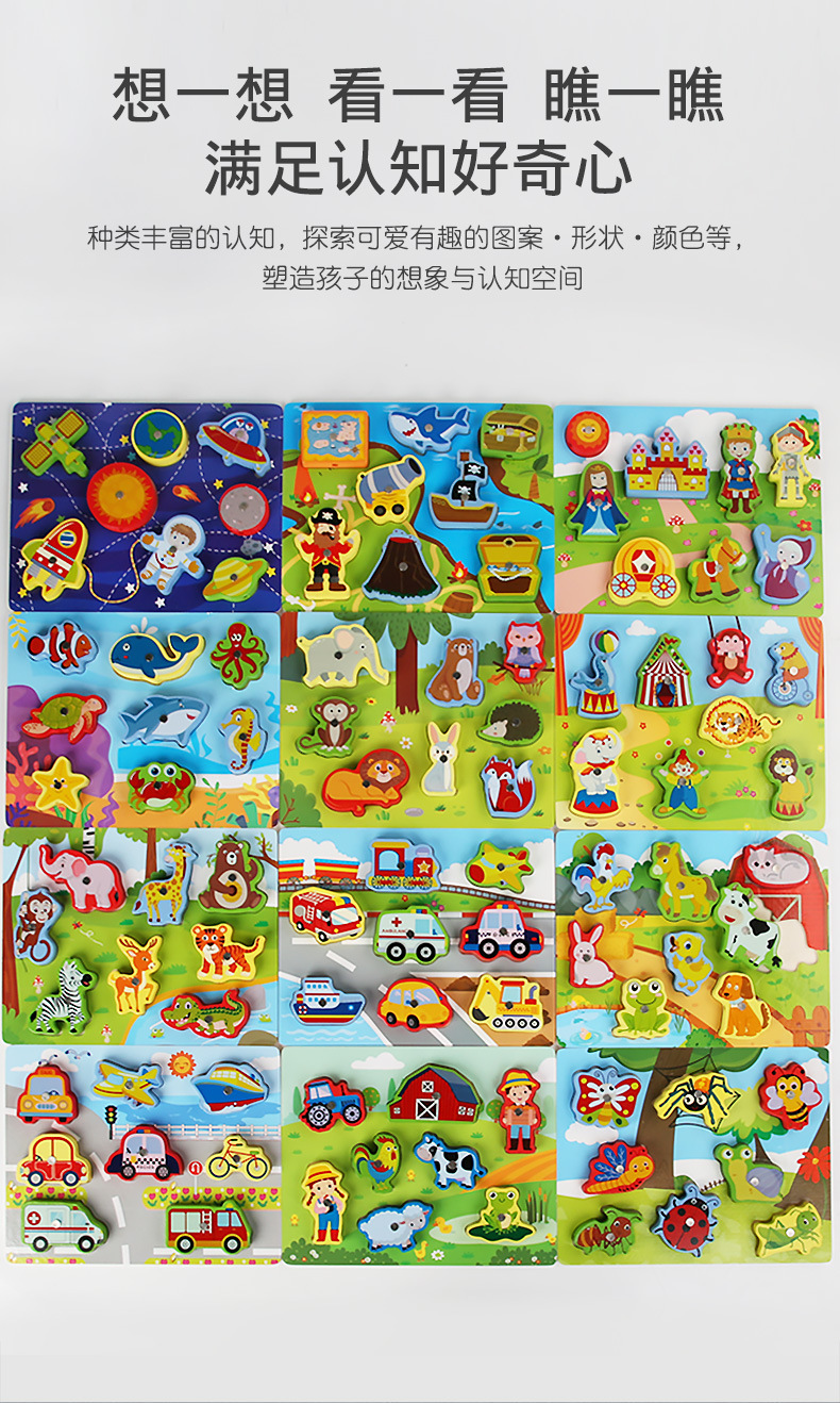 Cross-Border Wholesale Threading Fishing Puzzle Transportation Farm Forest Ocean Digital Puzzle Three-Dimensional Building Blocks Early Education Puzzle