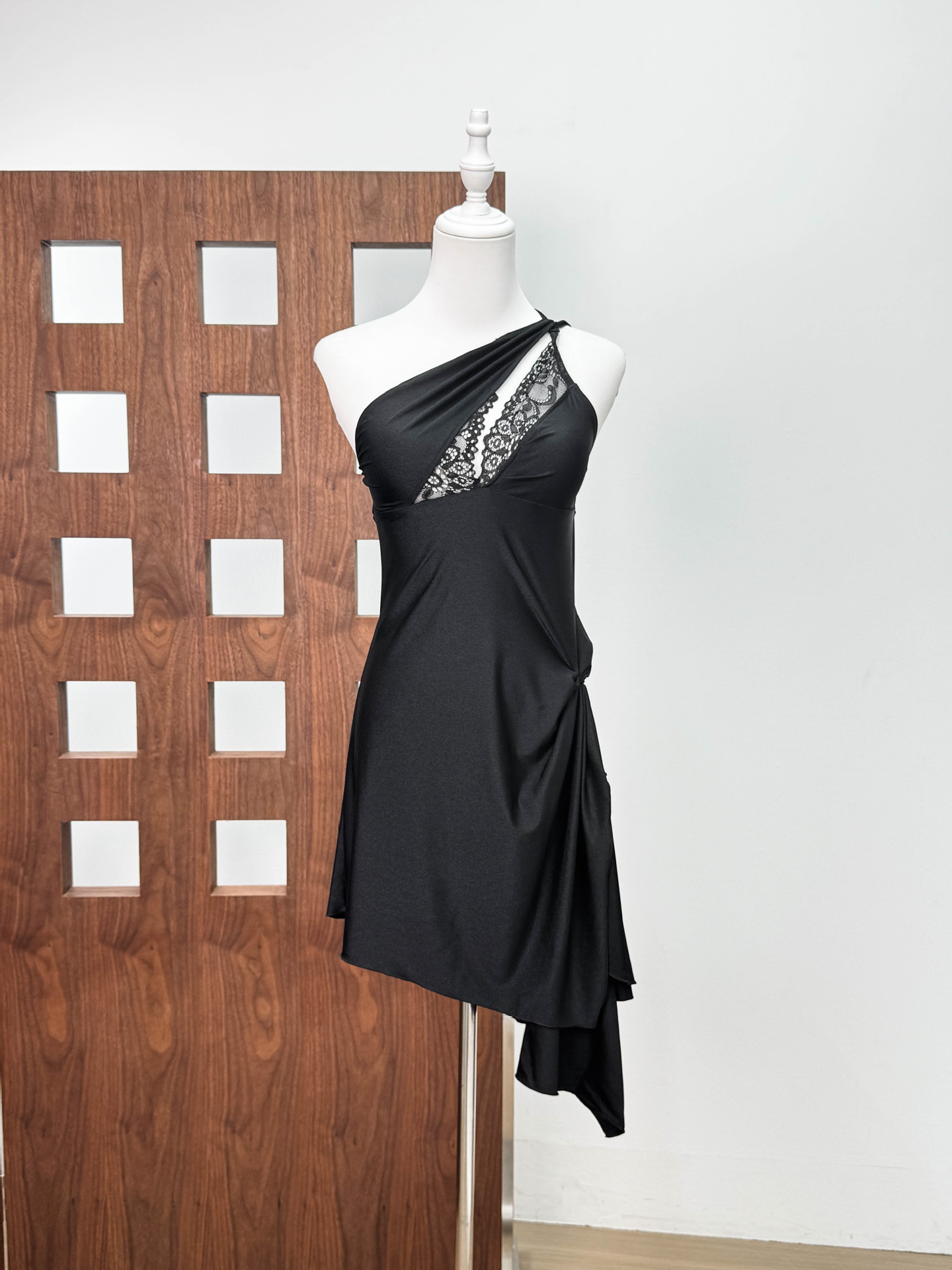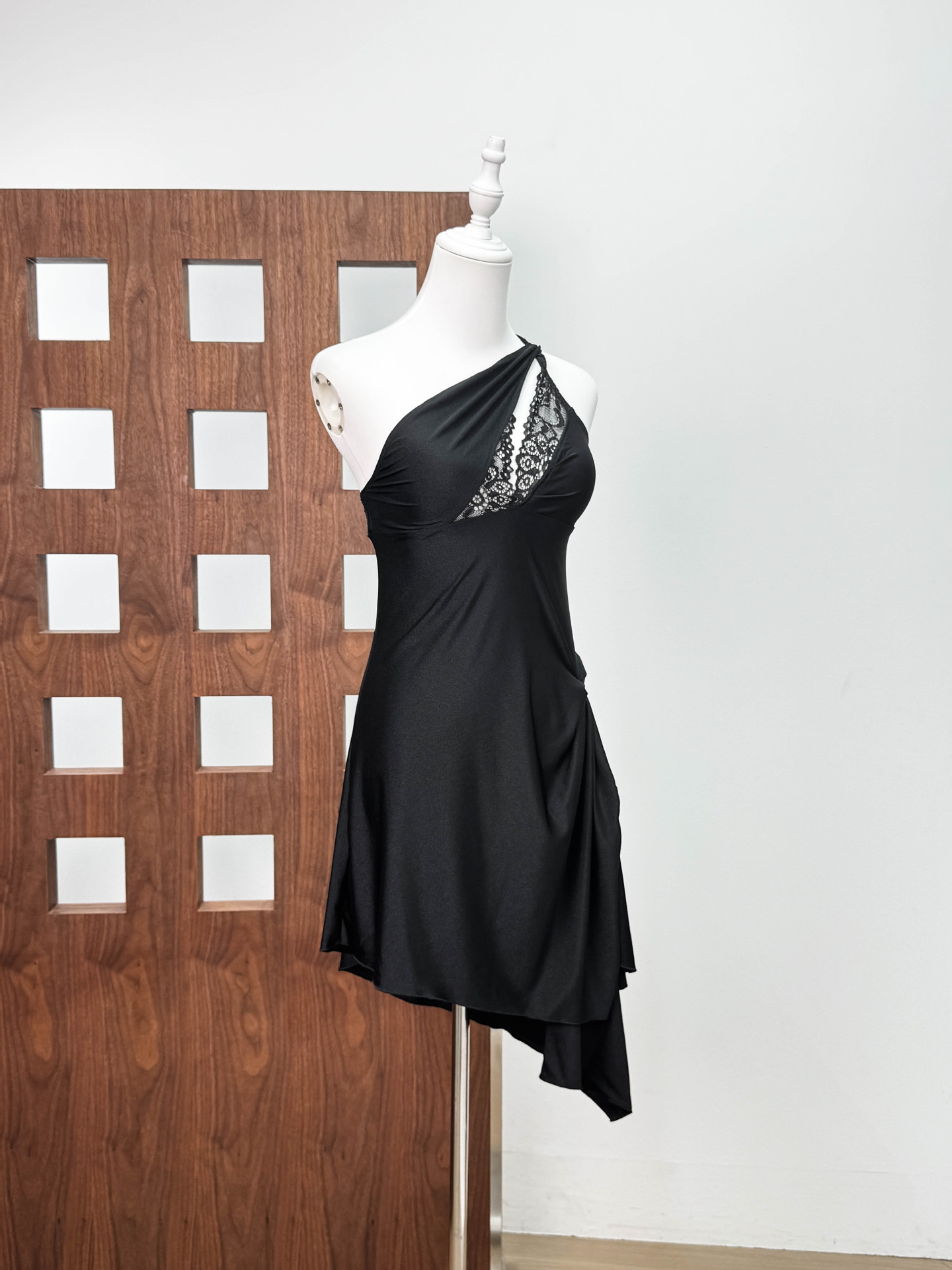 French Niche Women's High-end Style Crossbody Backless Skirt Pure Desire Sexy Spice Girl Lace Hollow Out dress