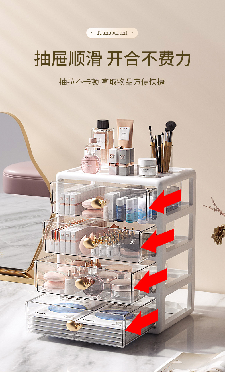 Choice Cosmetic Storage Box, High-End Desktop Lipstick Box, Multi-Layer Makeup Box, Light Luxury Drawer-Style Storage Box Wholesale