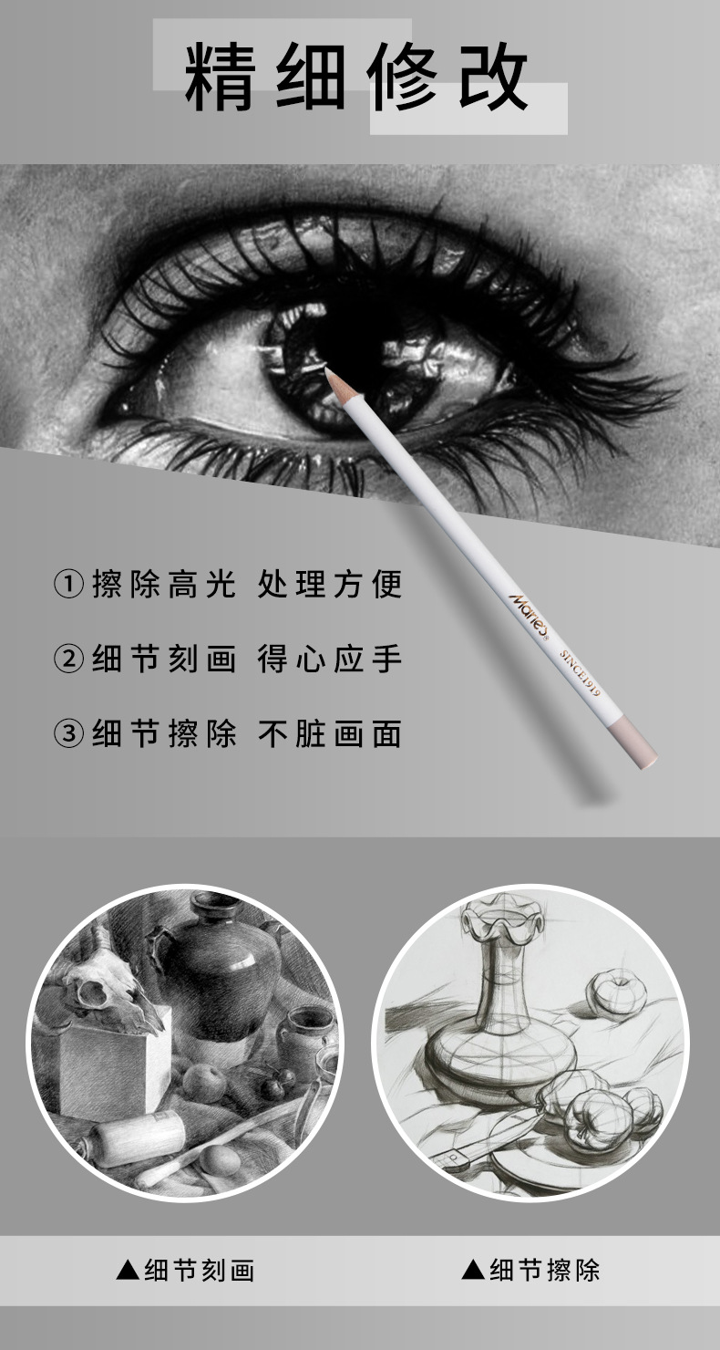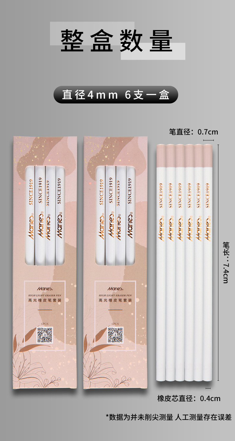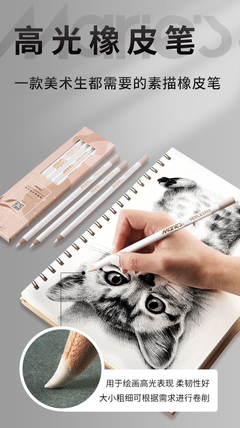 Marley brand pen-shaped high-gloss rubber pen c6463 painting pen-shaped eraser is not easy to dirty professional sketch pencil art