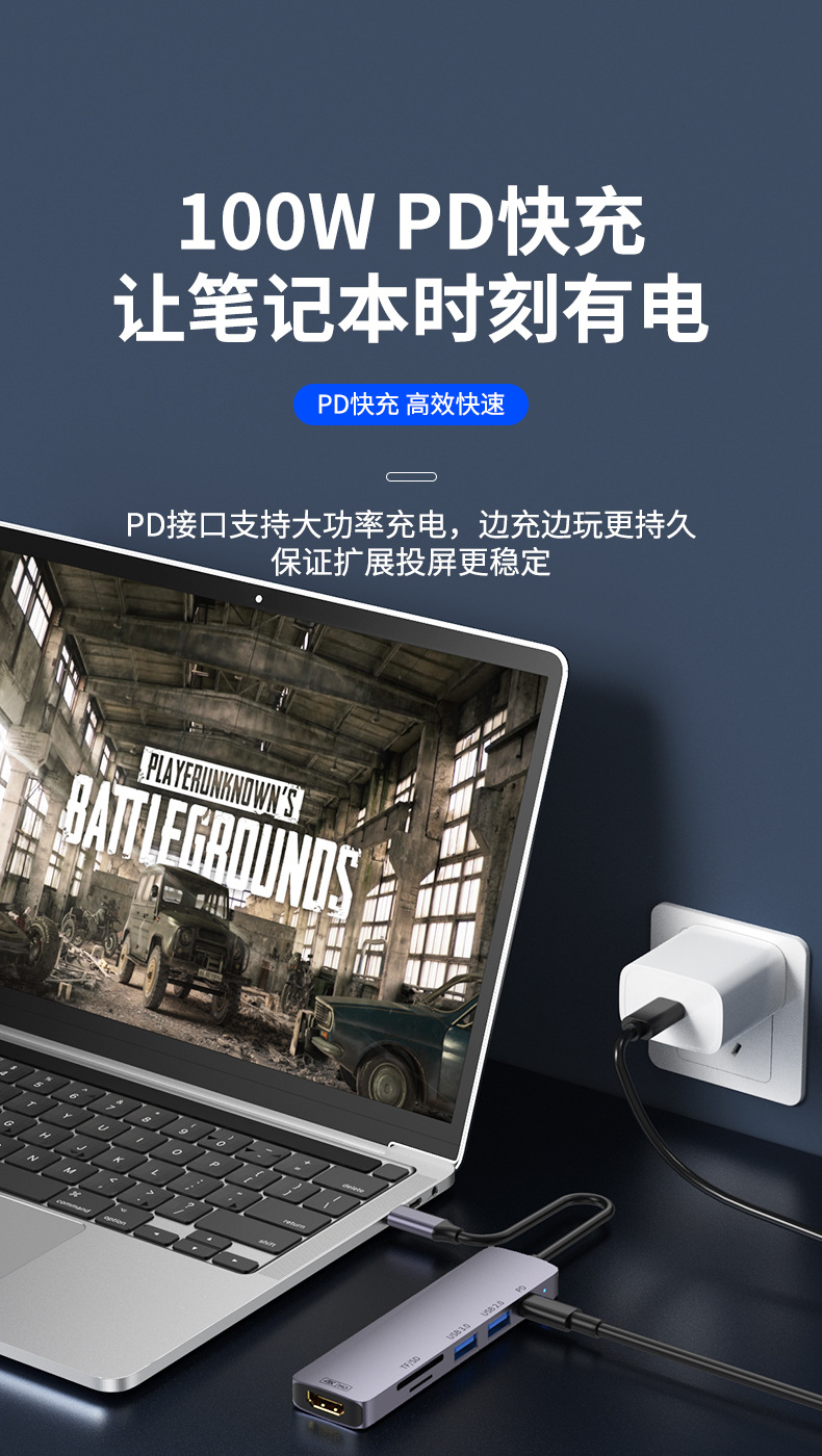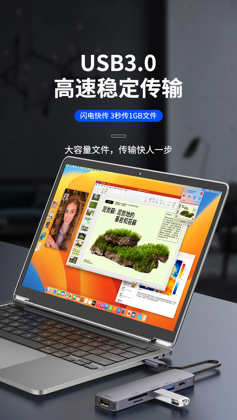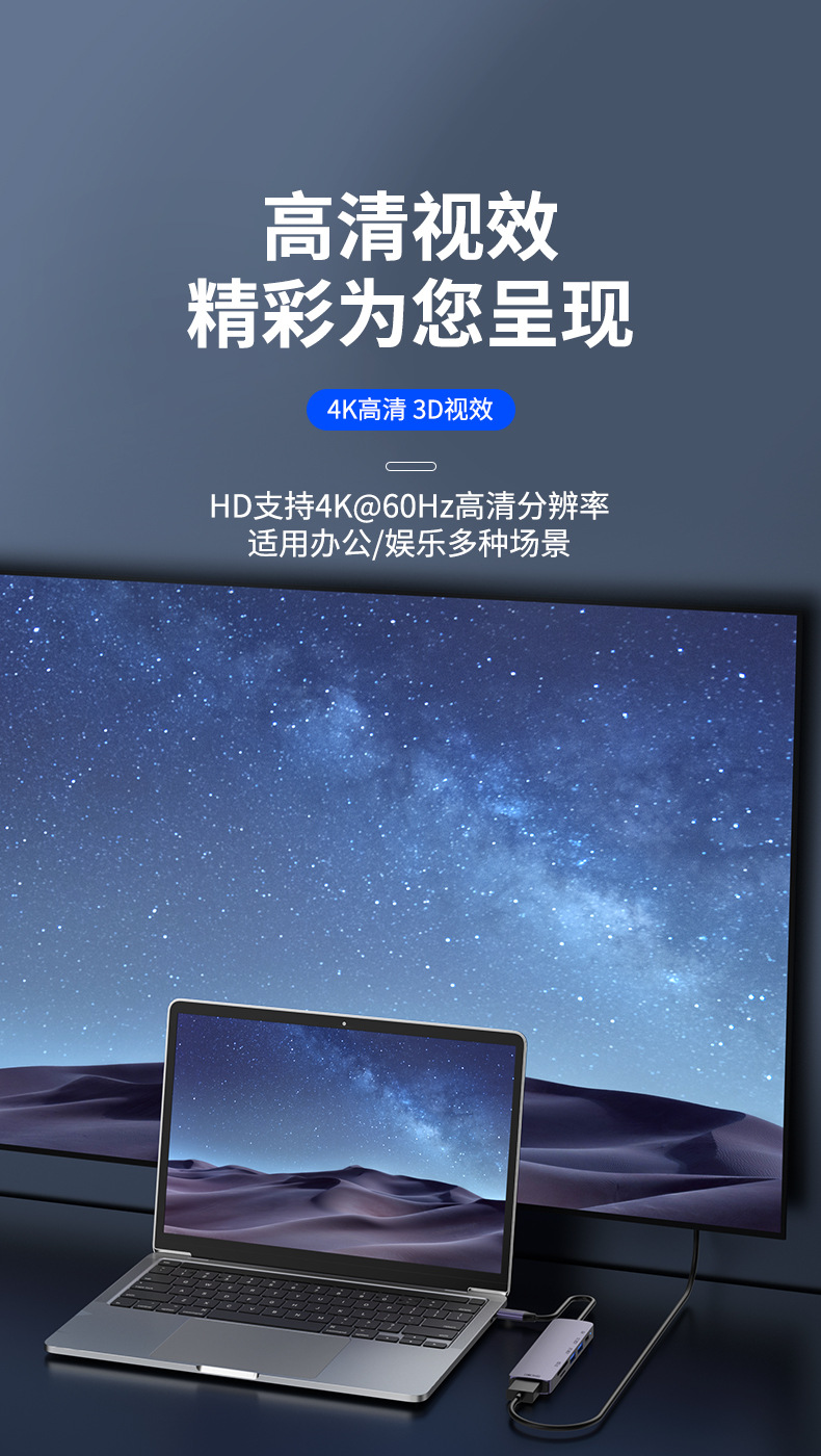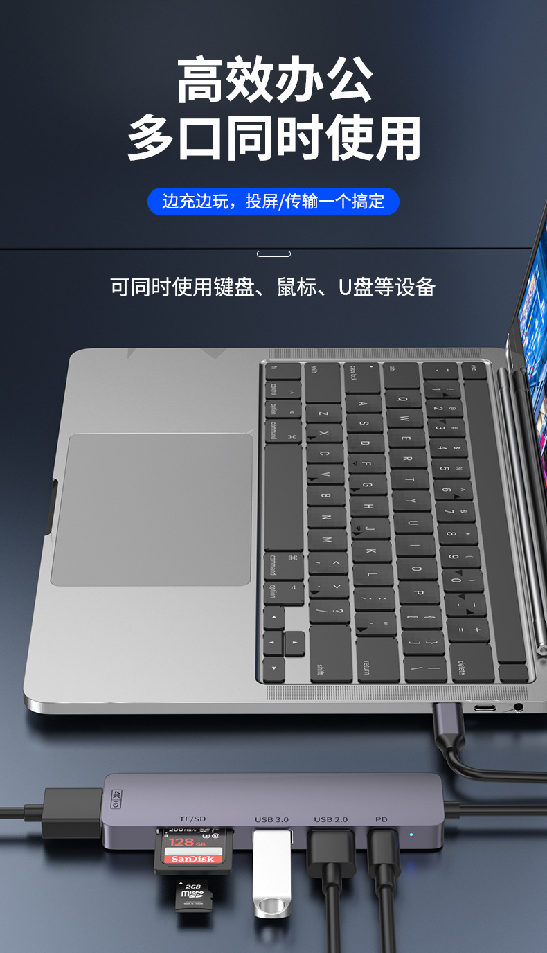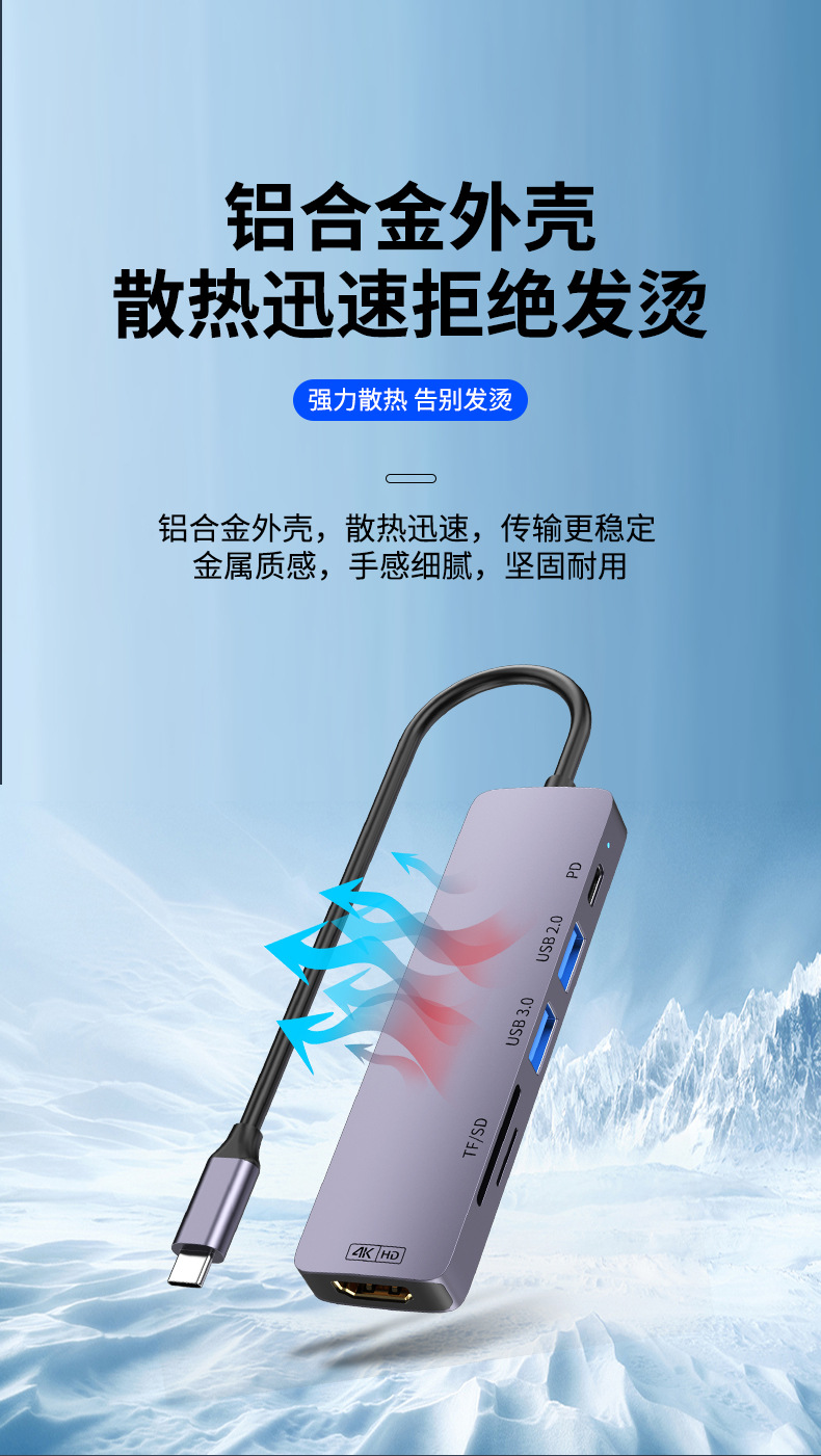 Docking Station Typec Docking Station Hdmiusb Splitter Pd Power Supply Suitable for MacBook Notebook Multi-Interface