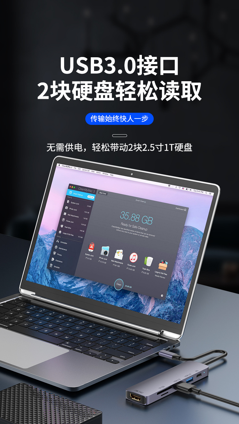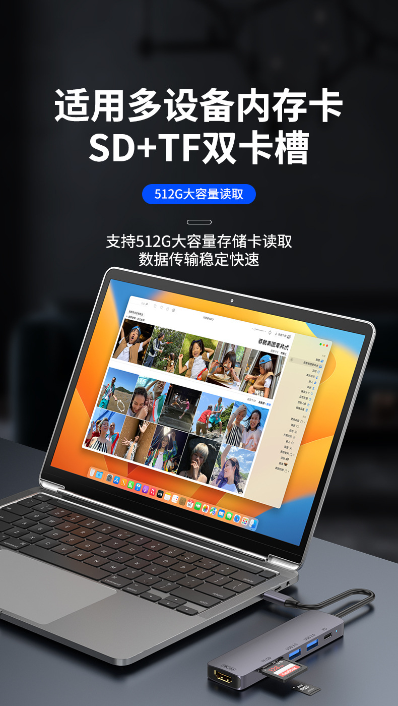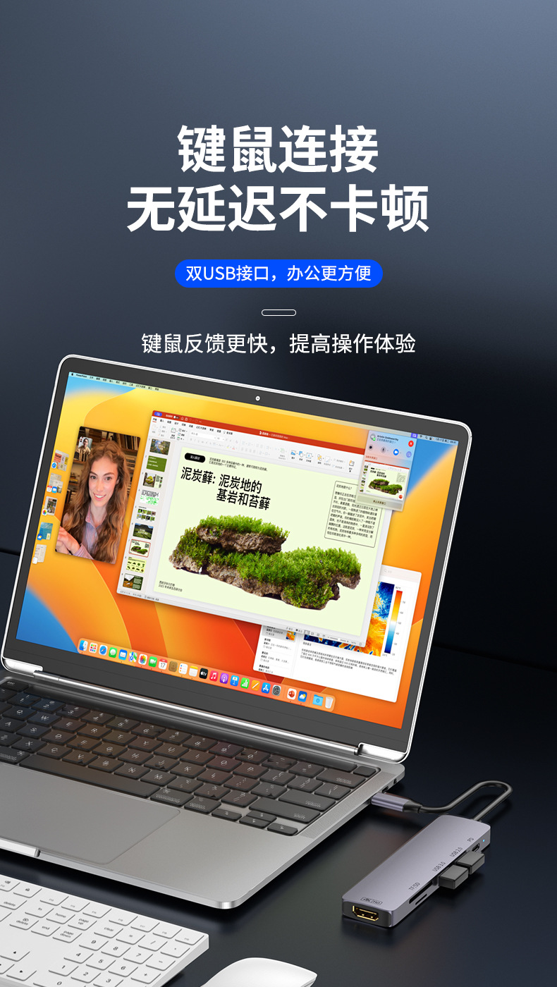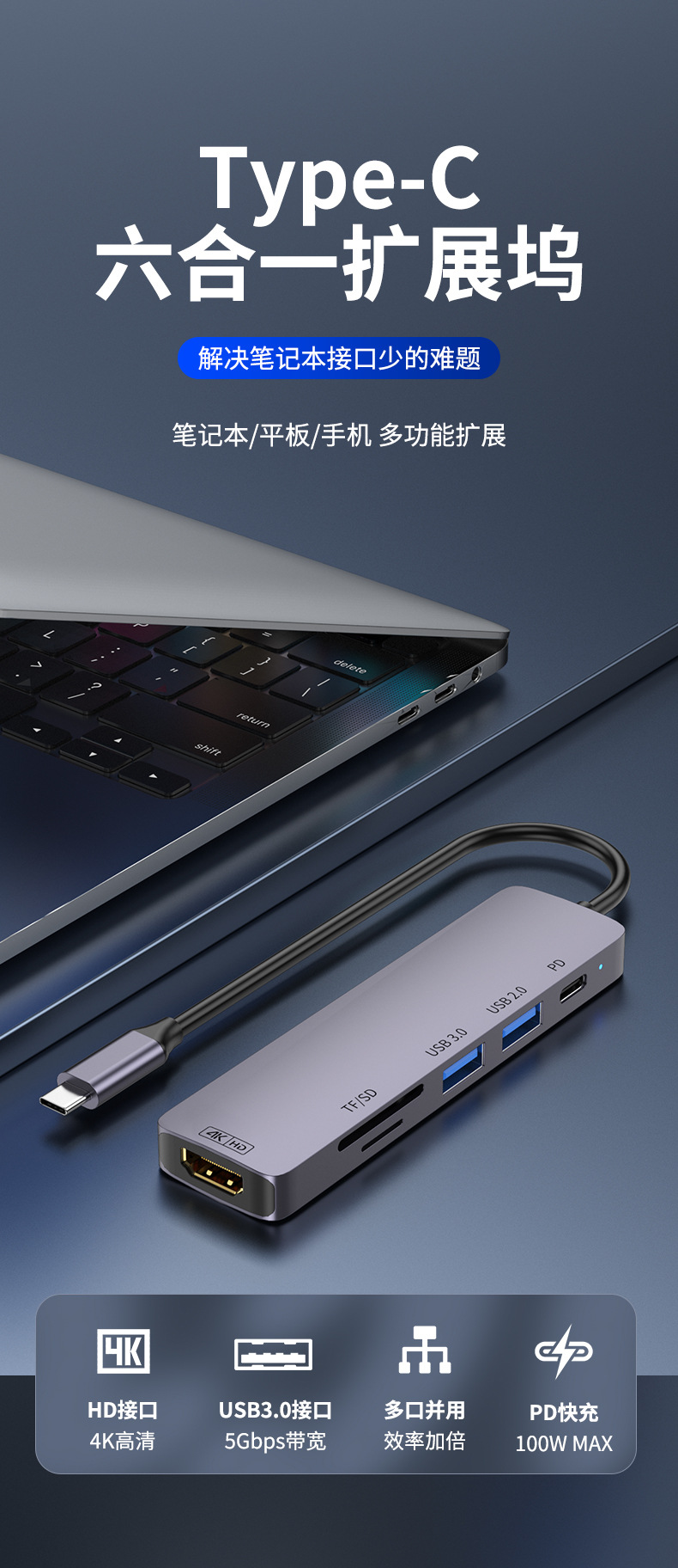 Docking Station Typec Docking Station Hdmiusb Splitter Pd Power Supply Suitable for MacBook Notebook Multi-Interface