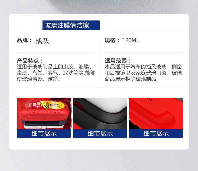Weiyue Automobile Glass Oil Film Wipe and Remove Strong Front Block Side Window Rear View Mirror Stain Coating Crystal Removal Debedi