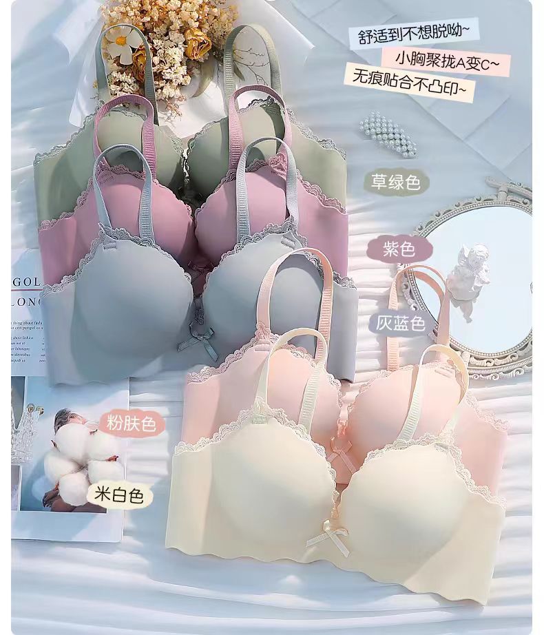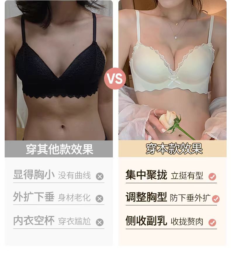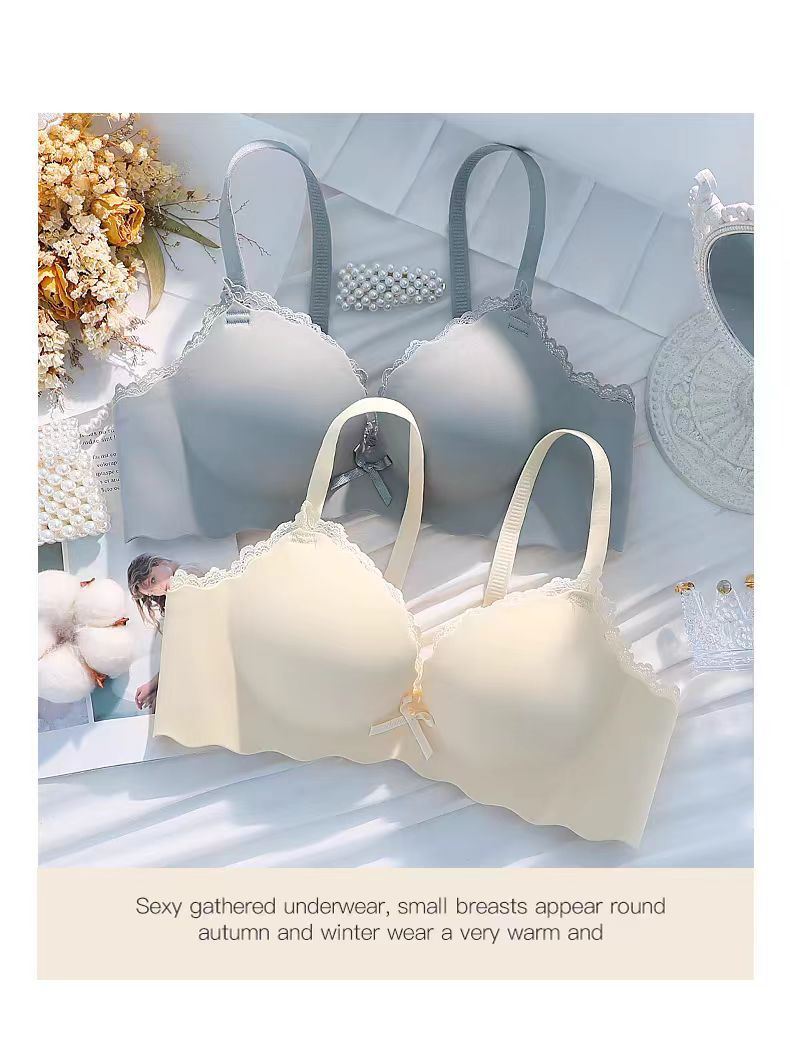 Traceless Underwear Women's Small Chest Push-up No Steel Ring Thickened bra Flat Chest Special suit Sexy Lace Top Bra