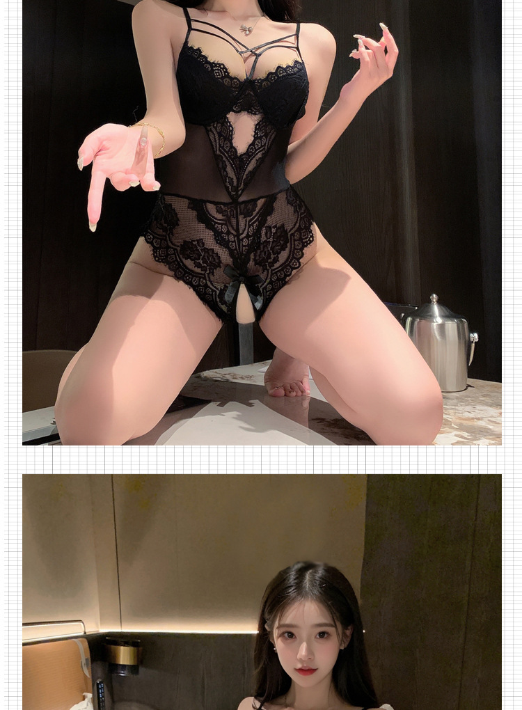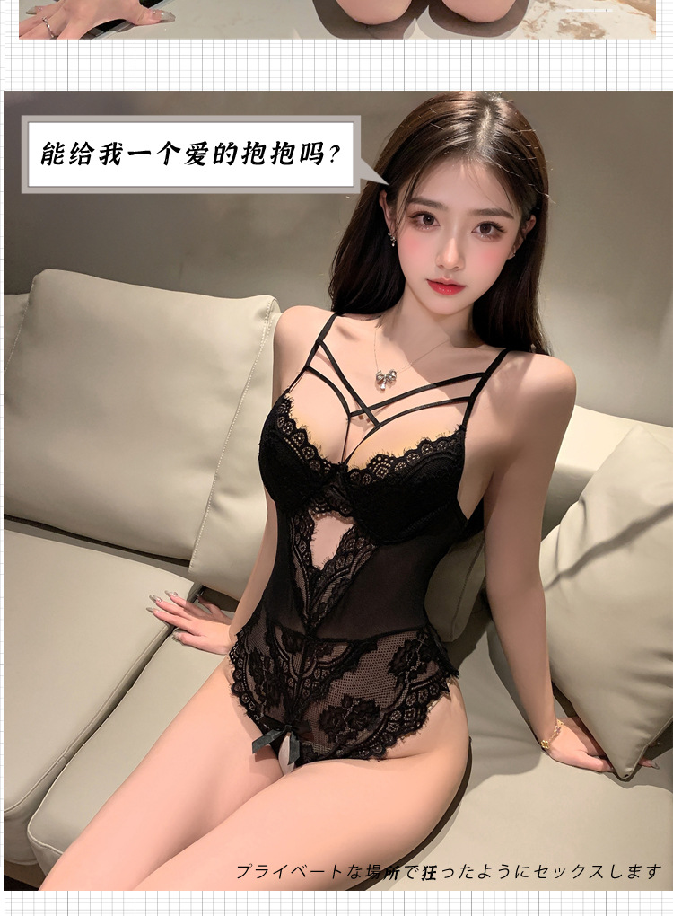 Open-Crotch Lingerie, Sexy Uniform, Seductive Pajamas, Pure Desire, Small Breasts Appear Larger, Backless Butterfly One-Piece Flirting Pajamas