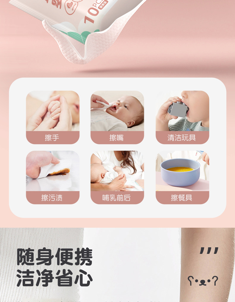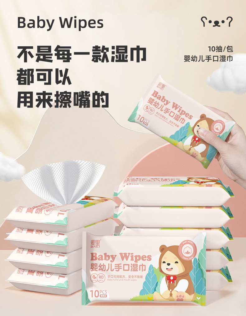 Baby Wipes 10 Small Packs Portable Baby Wipes Hand and Mouth Wipes Special Kidsren's Cleaning Wholesale