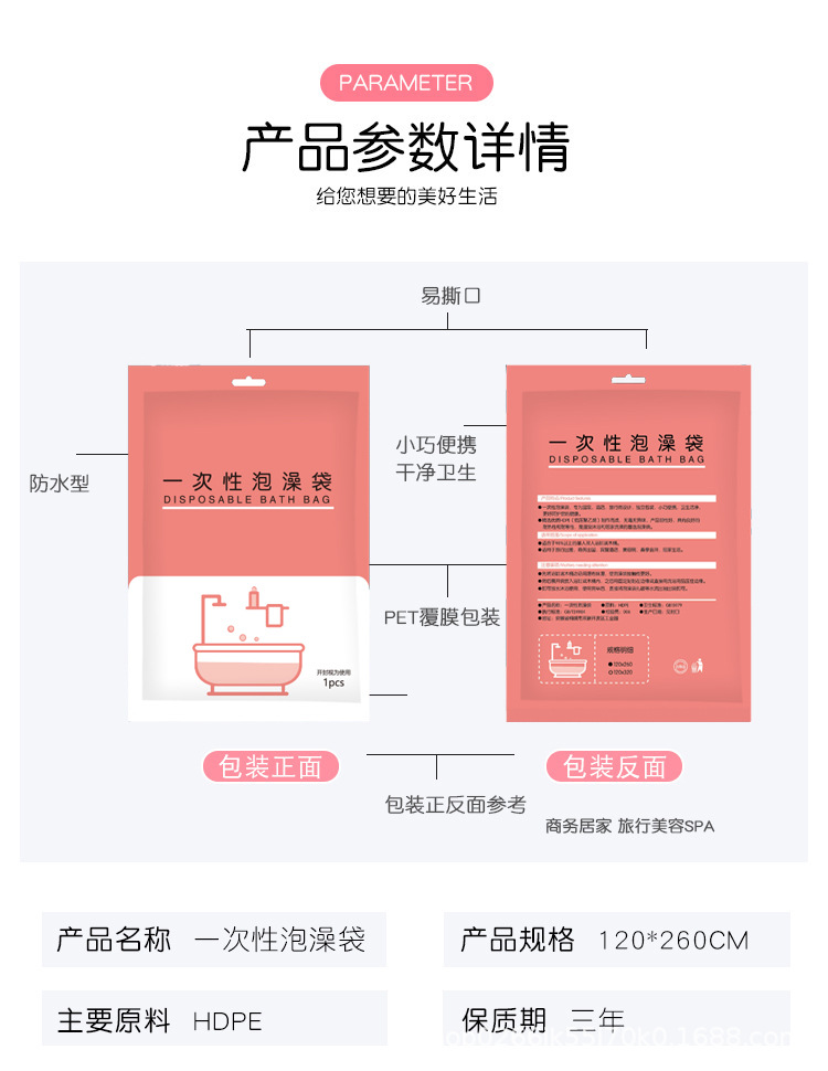 Thickened Disposable Bath Bag Hotel Adult Bath Bag Children's Household Wooden Bucket Bath Bag Bath Cover Travel