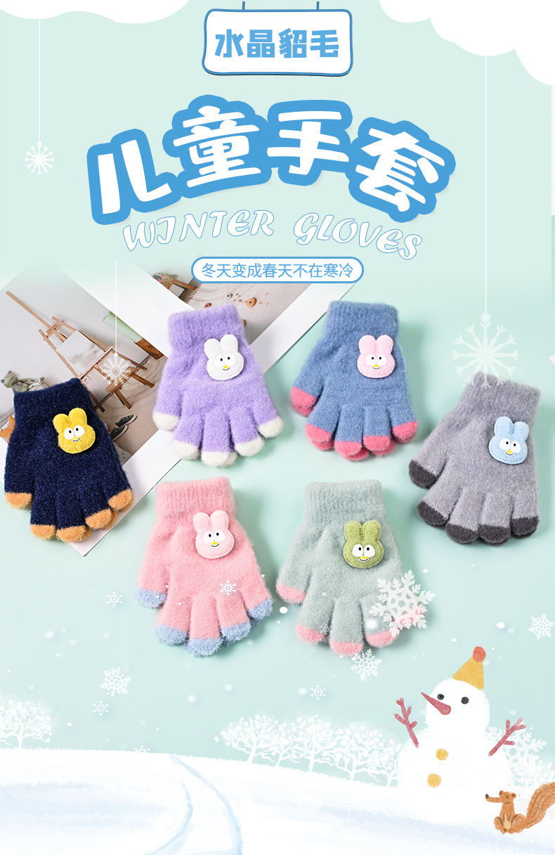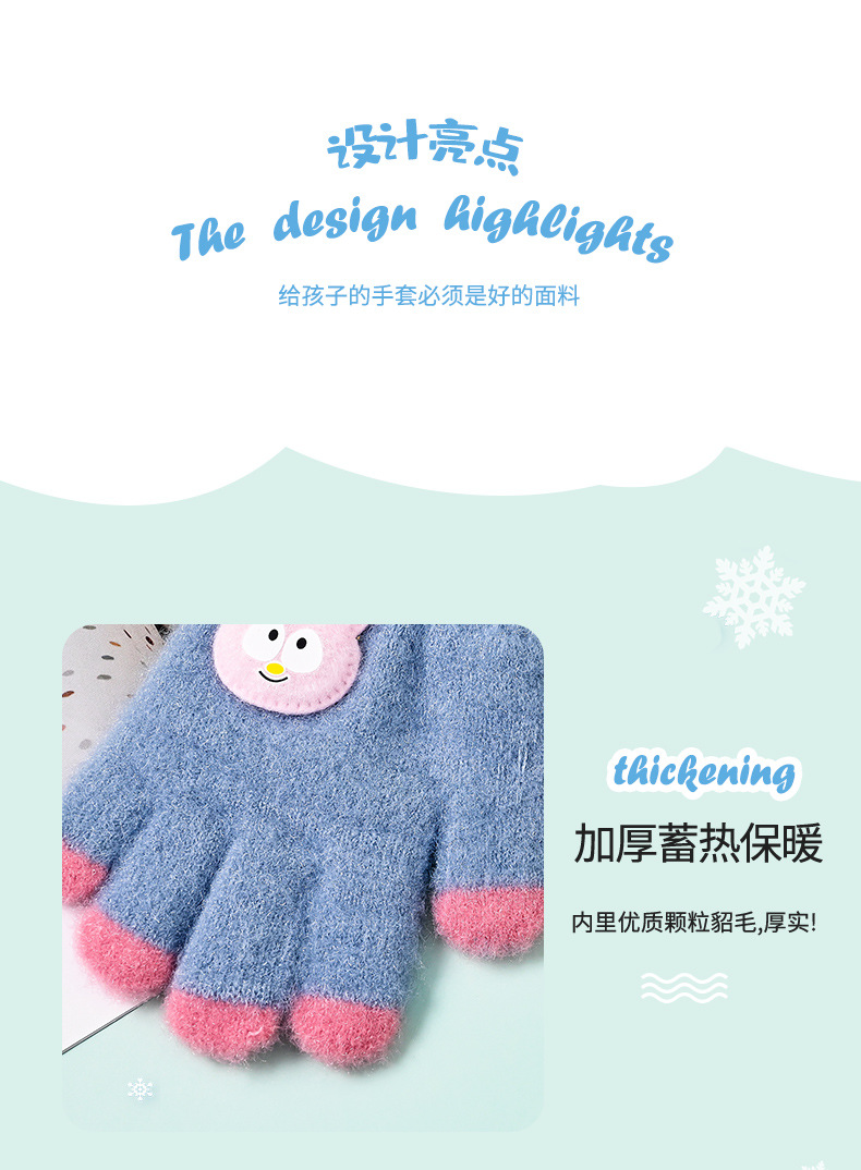 Winter Thickened Cartoon Warm Gloves for Infants and Toddlers, Full-Finger Gloves for Boys and Girls, Five-Finger Gloves for Children to Prevent Thumb Sucking