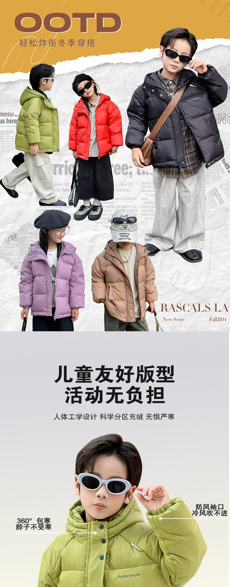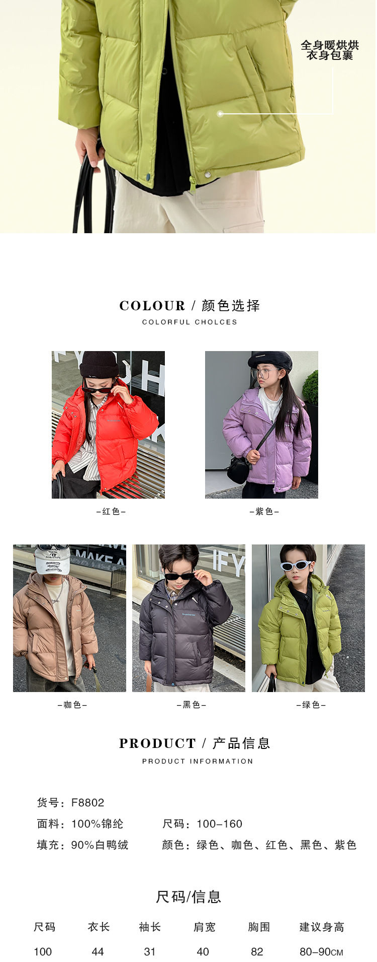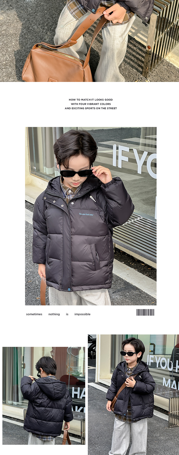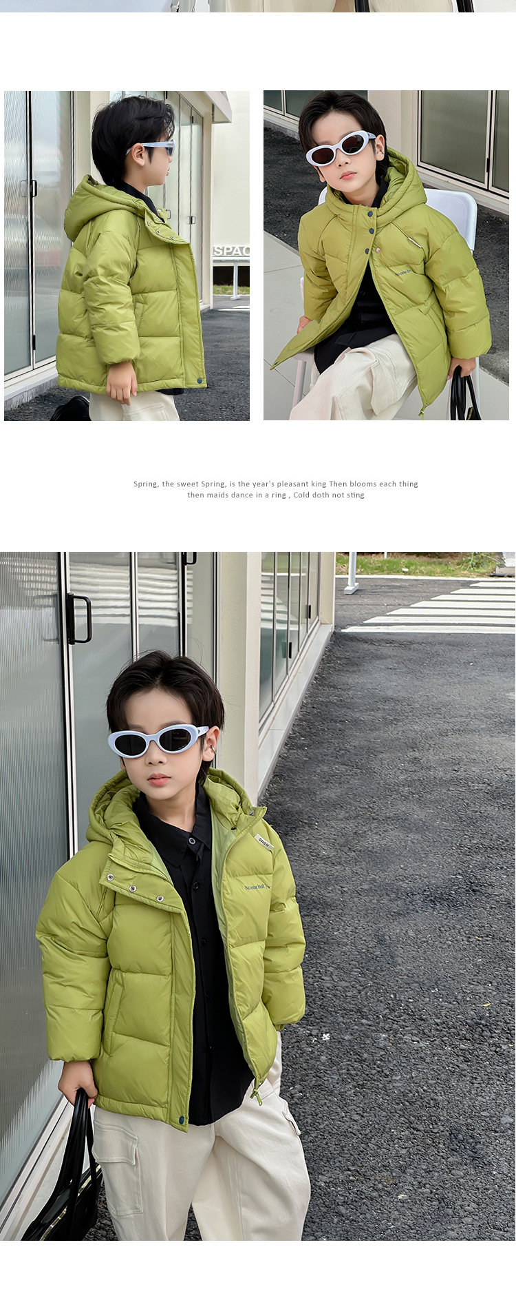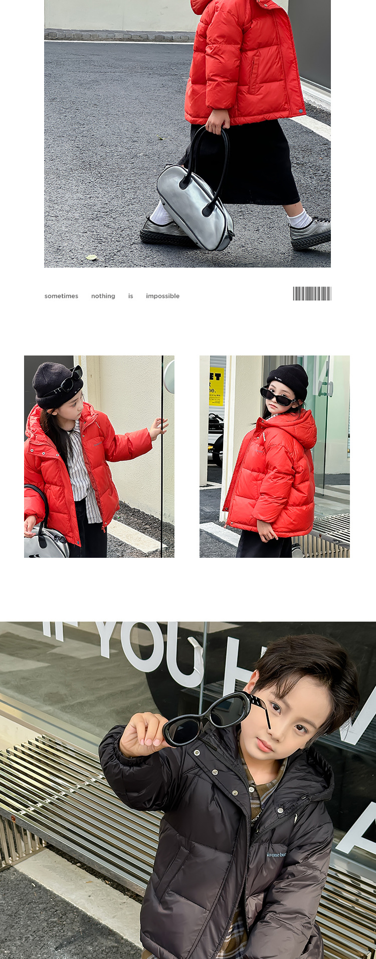 2024 New Autumn and Winter Kidsren's down Silk Clothing for Boys and Girls Pure Color Short Hooded Foreign Style Outer Jacket Protection