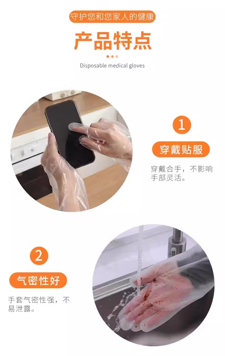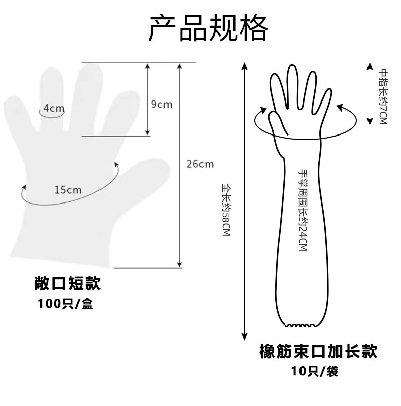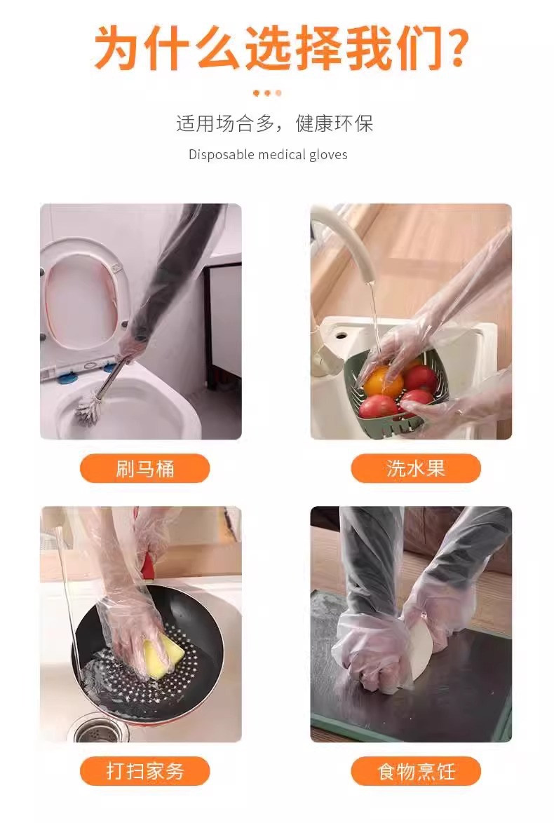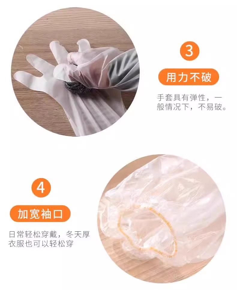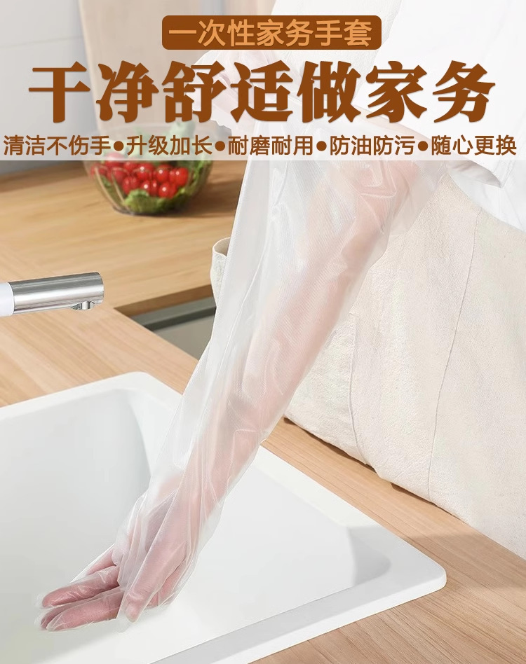 Choice Disposable cpe long-arm gloves household kitchen dishwashing laundry cleaning thickened lengthened elastic girdle waterproof oil