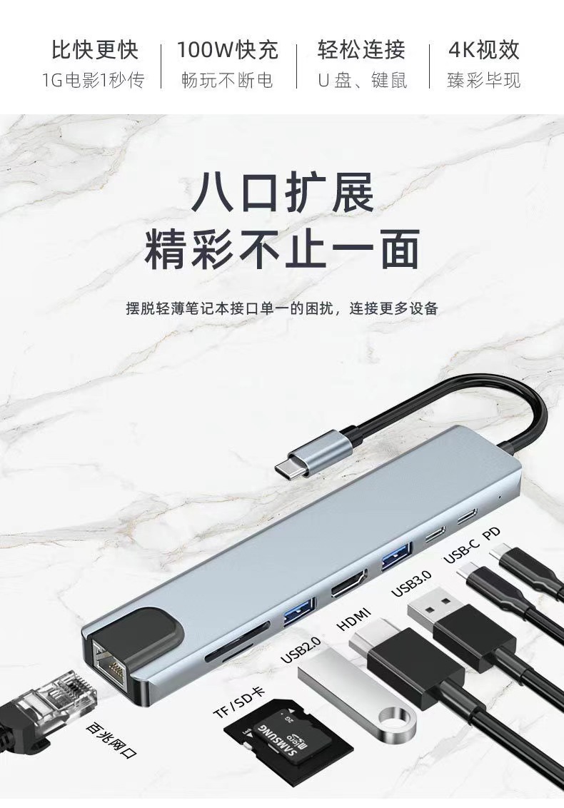 Wholesale Type-C Network Card Multi-Interface Expansion Pd Charging Usb3.0 Hub Series 4K HDMI Docking Station