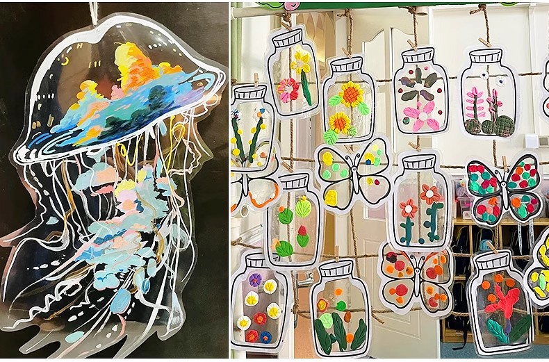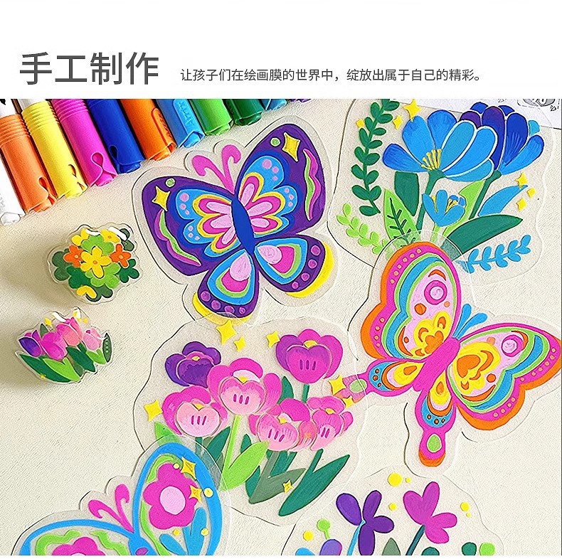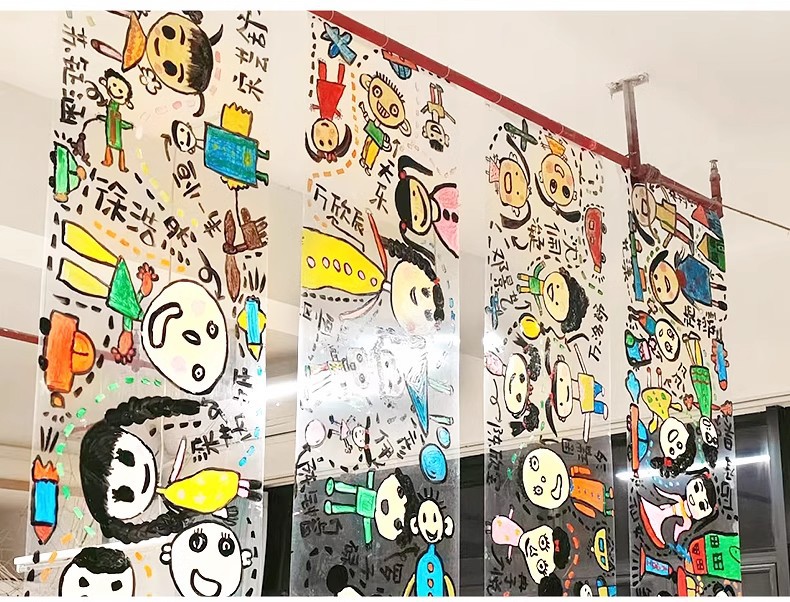 Choice Wholesale Kindergarten Environmentally Friendly Thickened Painting Transparent Glass Stickers Children's Classroom Art Graffiti Plastic Hanging Painting Canvas