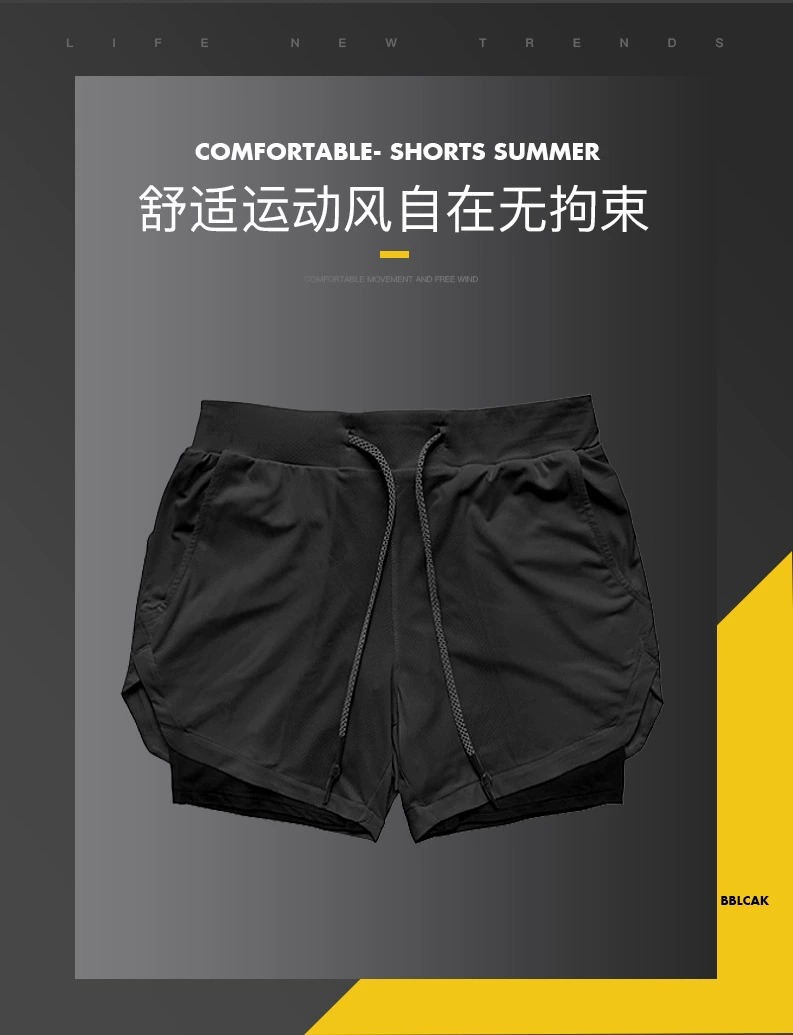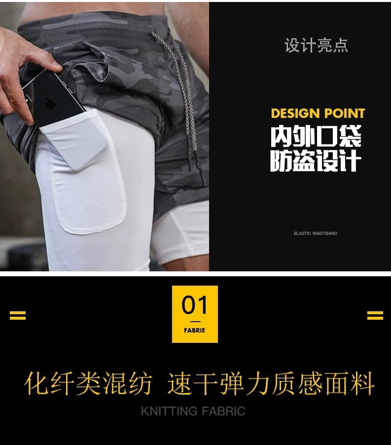 Choice Running Shorts Men's Mobile Phone Sports Thin Double-Layer Training Breathable Quick-Drying Elastic Shorts for Summer