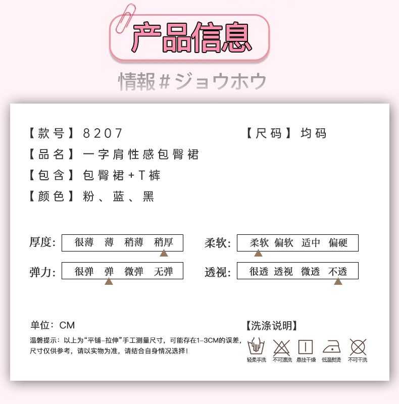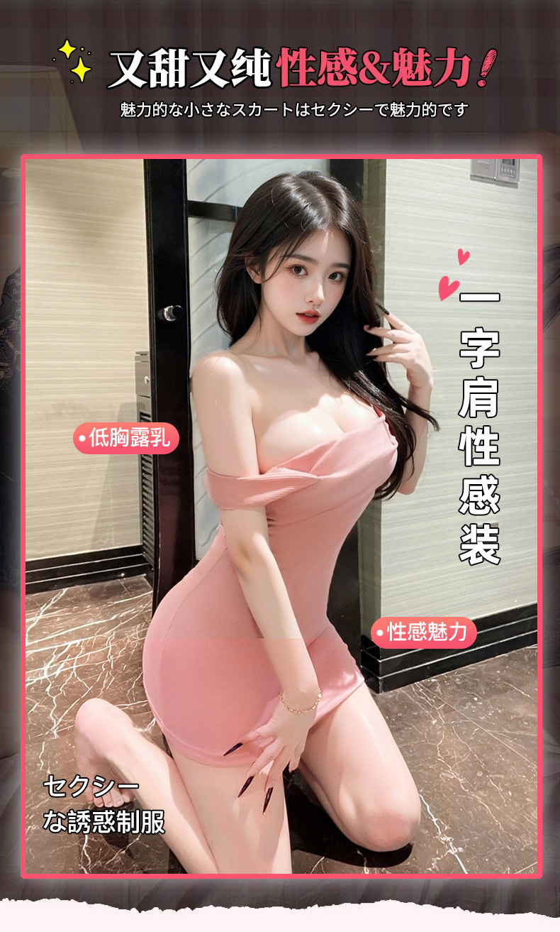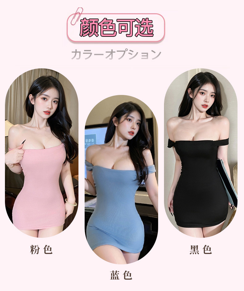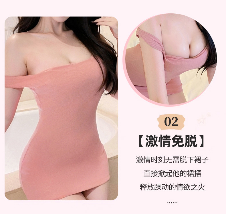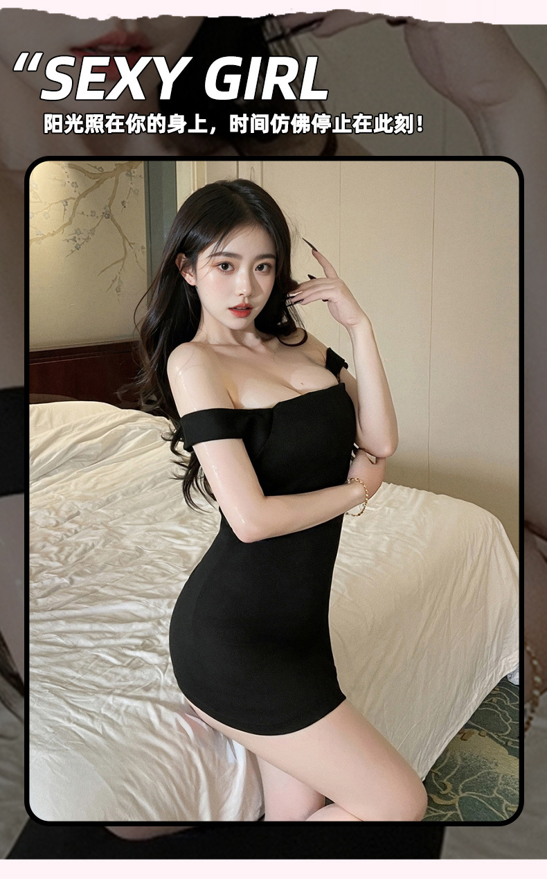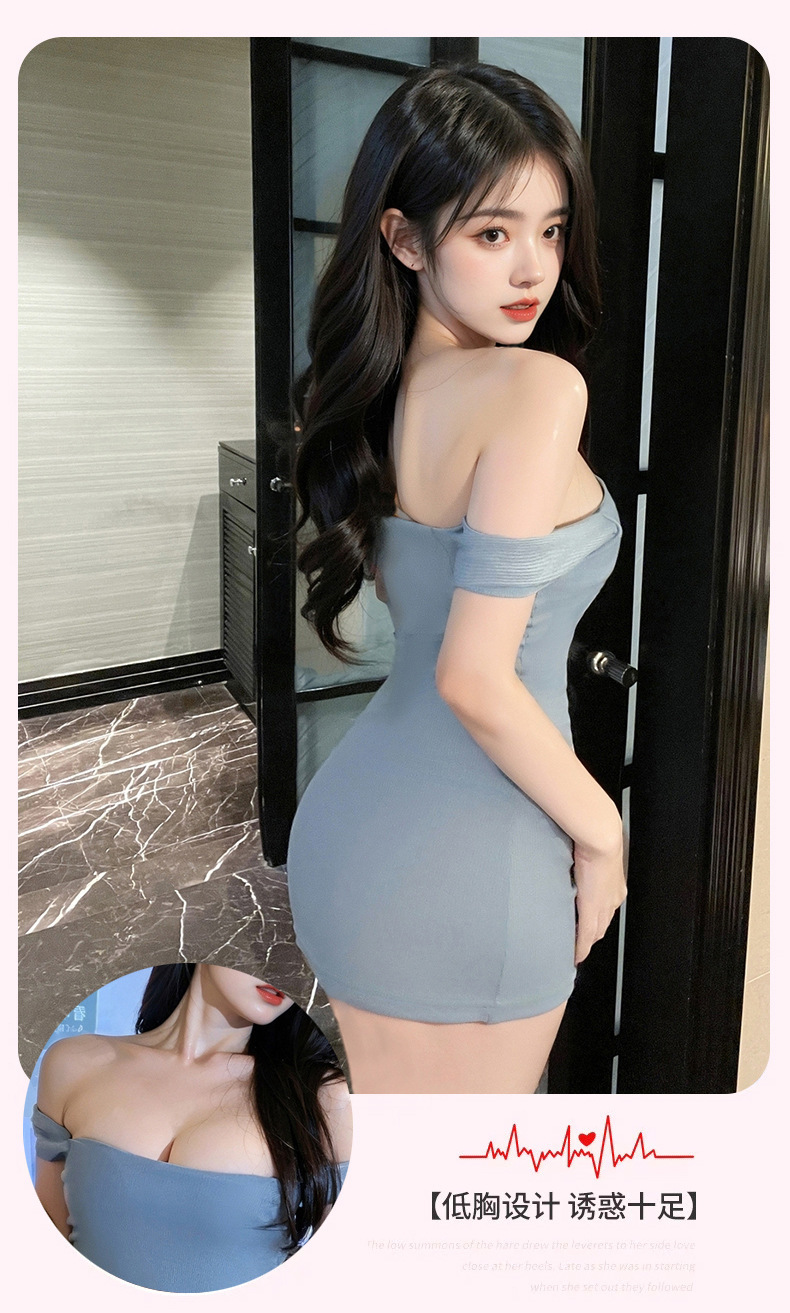 Sexy Flirting Sexy Intimates Low-Cut Pure Lust Temptation Tight Hip Skirt One-Shoulder Dress Short Skirt for Women 8207
