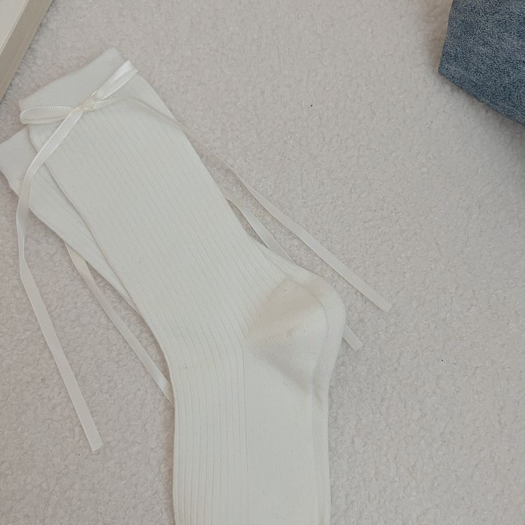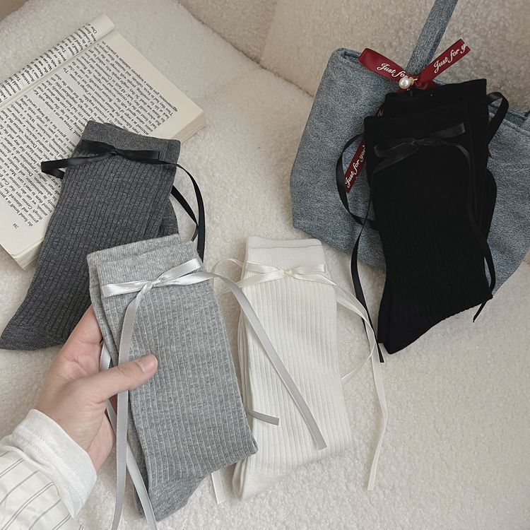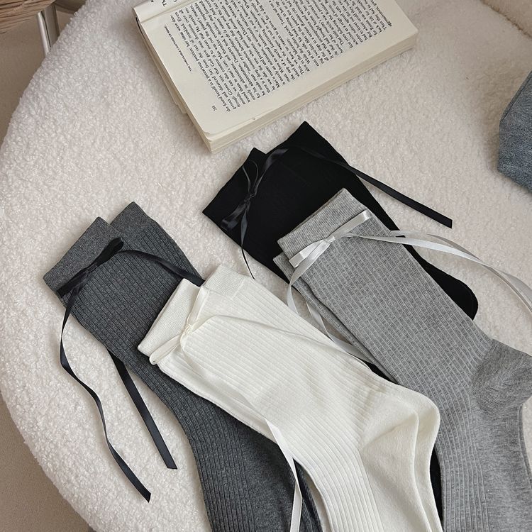 2024 autumn and winter new women's socks ins ribbon bow black and white JK Lolita pile socks Zhuji wholesale