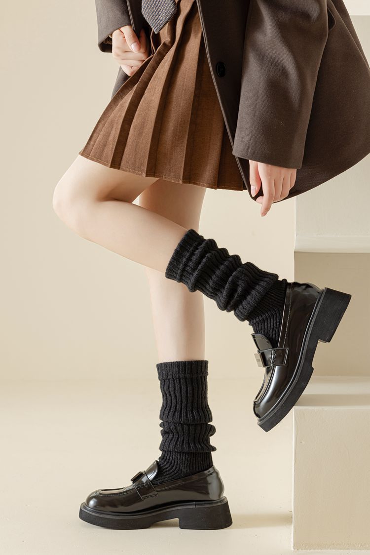 Autumn and Winter Plush Thick Needle Foot Sheath Knitted Leg Cover Women's Korean-style Solid Color Warm All-match Wool Leg Socks Cover