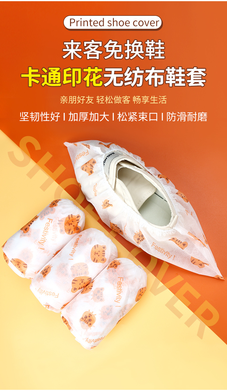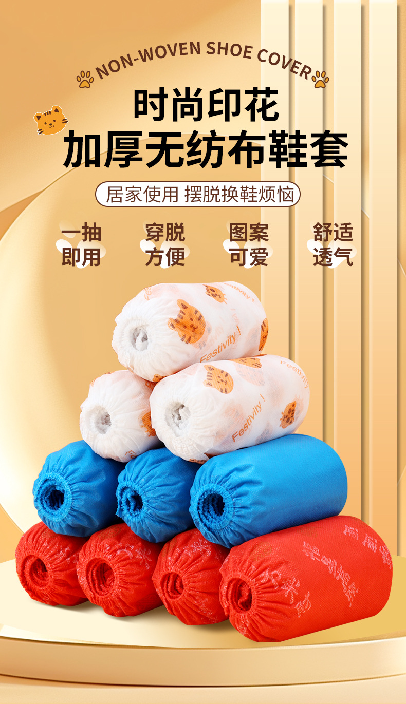 Dot-break Disposable Printed Non-woven Shoe Cover Indoor Household Thickened Dust-proof Wear-resistant Non-slip Adult Foot Cover