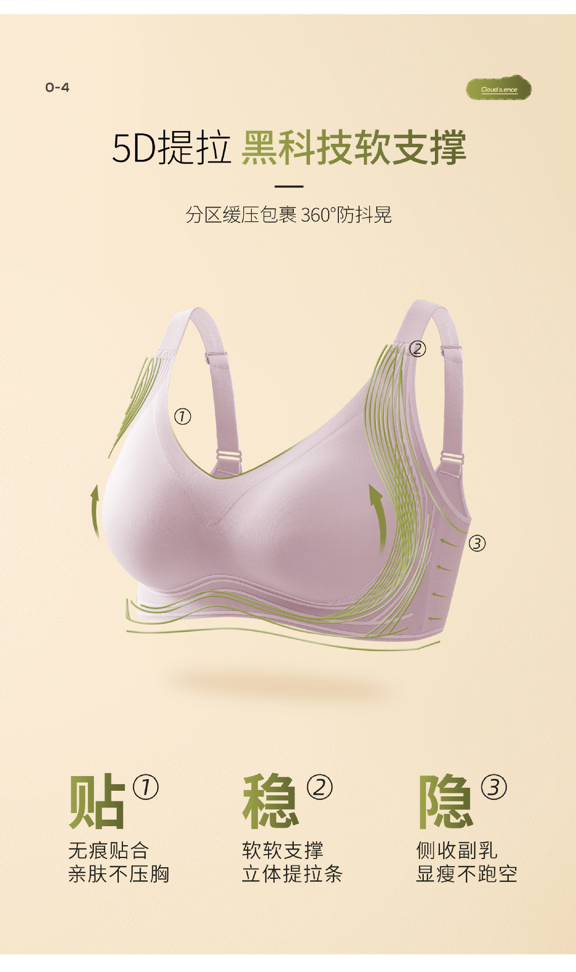 Choice Seamless Chest-revealing 5D Litching Underwear Stereo Support Round and Full Class 7A Antibacterial Health Soft Support Bra