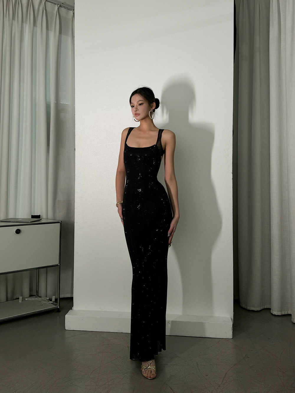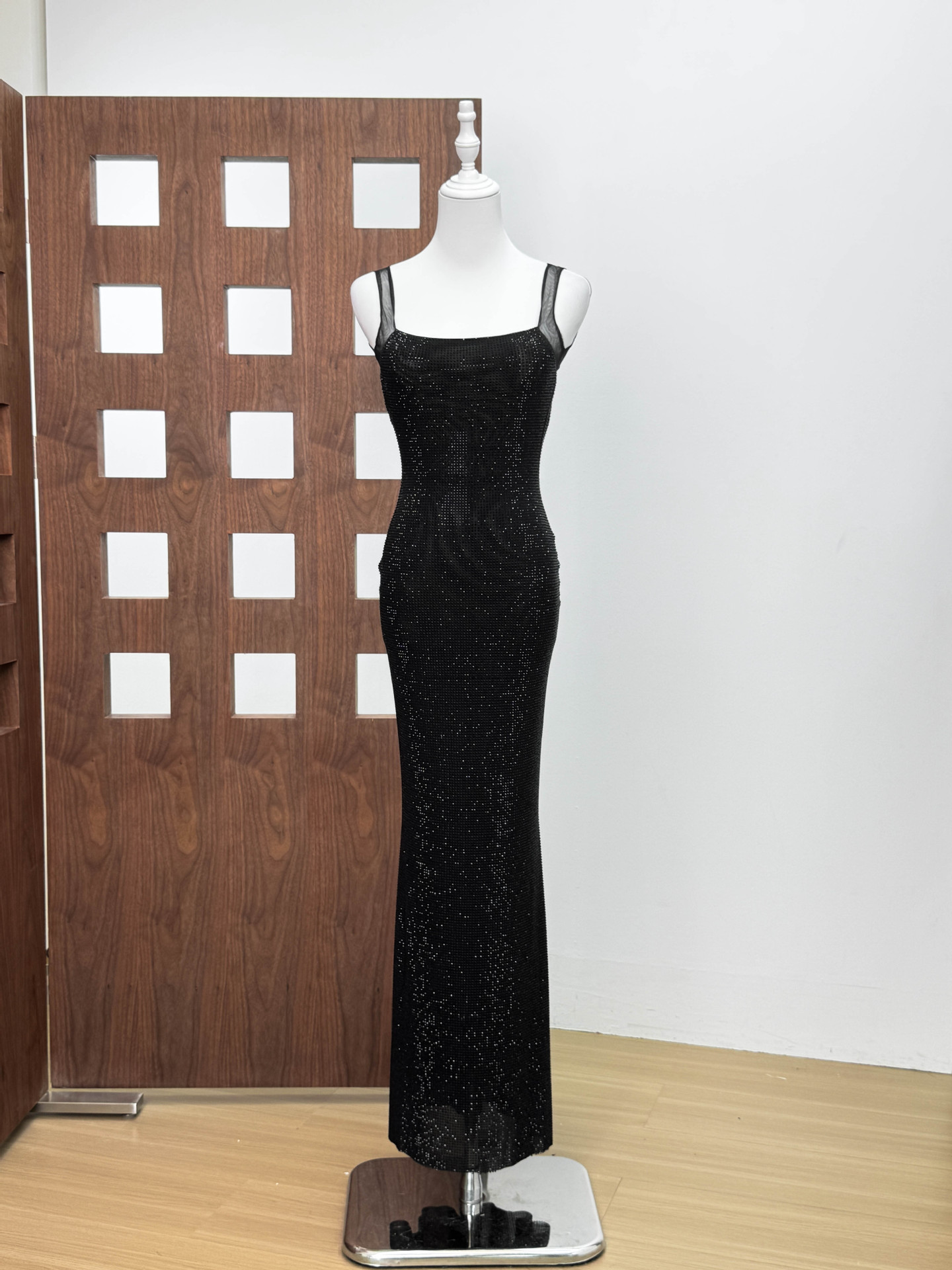 French Hot Diamond Suspender Dress Sexy Hip Skirt Classy Accessible Luxury Evening Dress Annual Meeting Party Backless Long Skirt