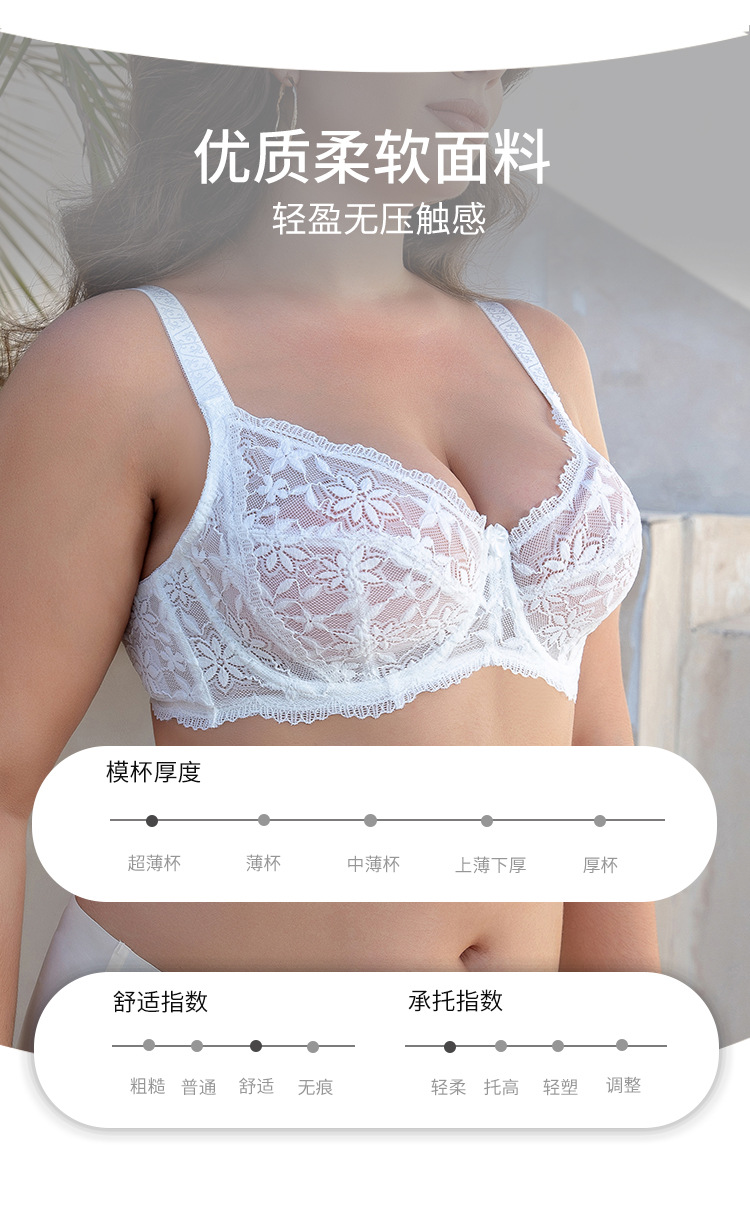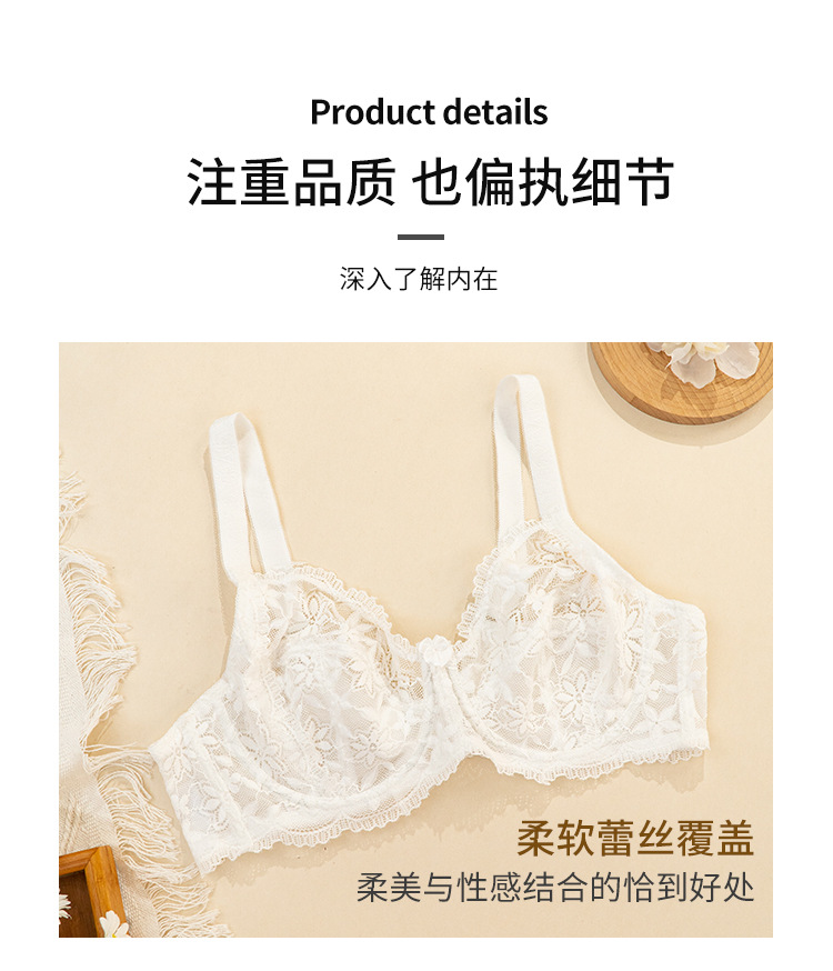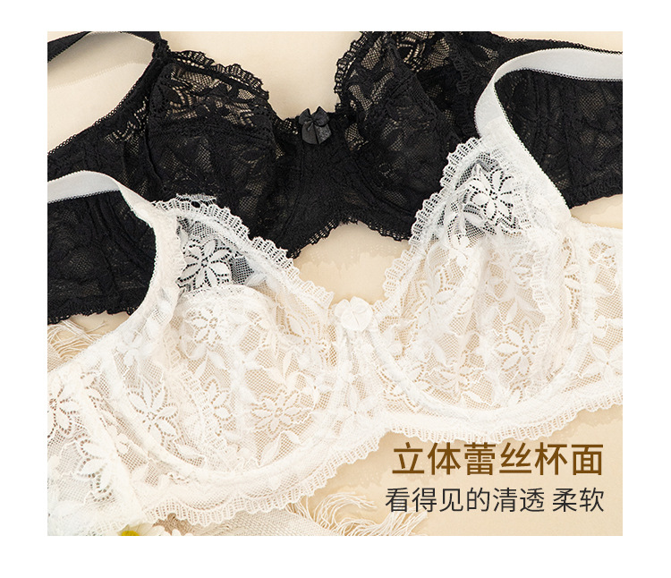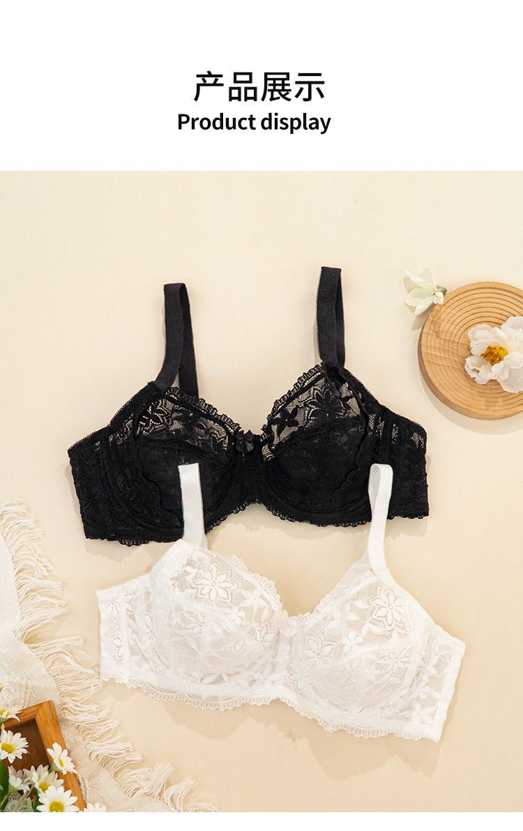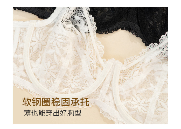 Cross-border European and American lace bra with steel ring thin cotton-free cup comfortable breathable upper support adjustable sexy underwear for women