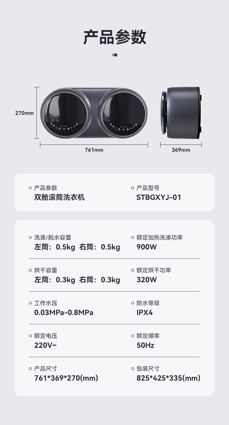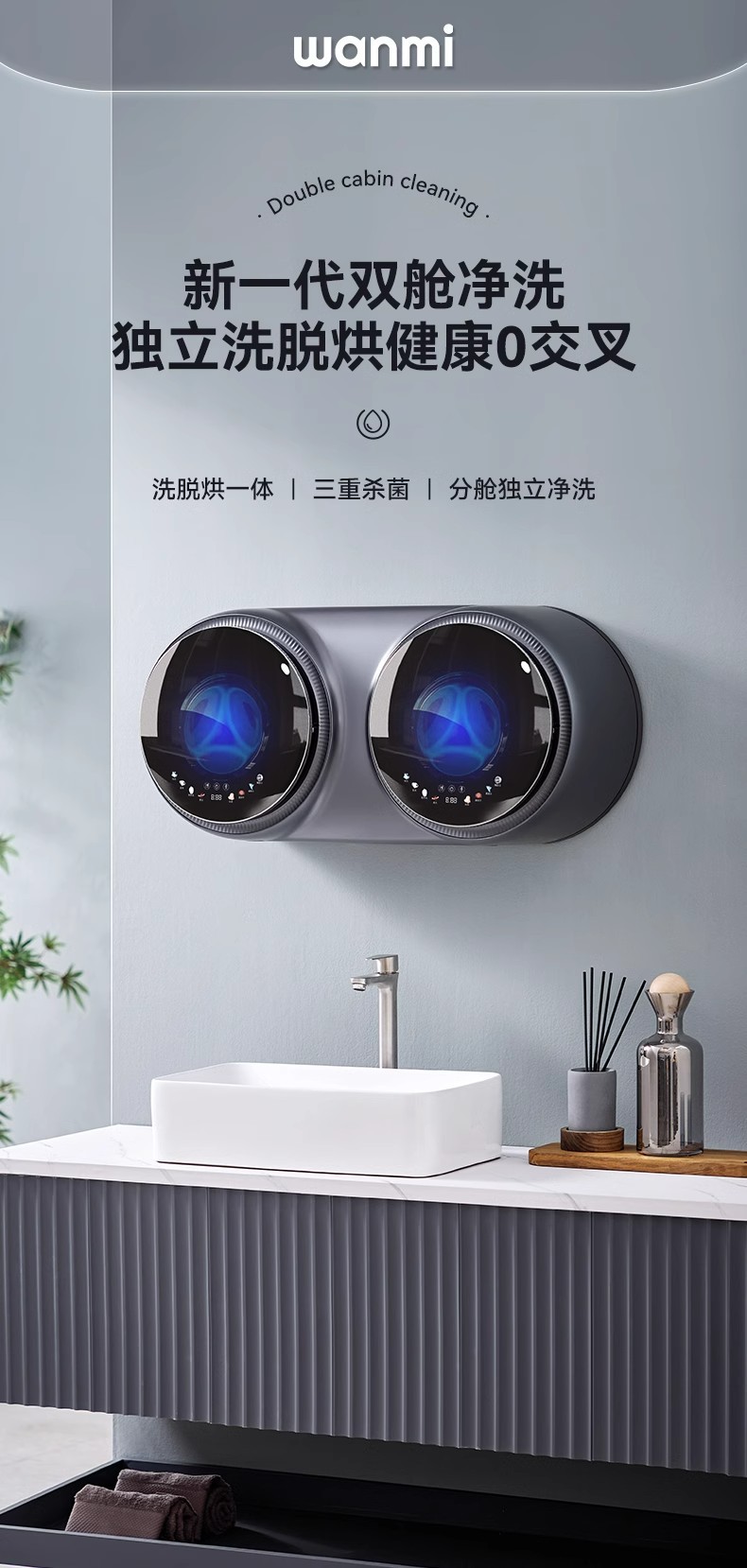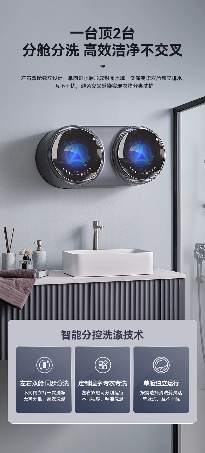 Double-Tub Wall-Mounted Mini Washing Machine, Fully Automatic Small High-Temperature Washing Machine for Underwear and Socks, with Integrated Washing and Drying Functions