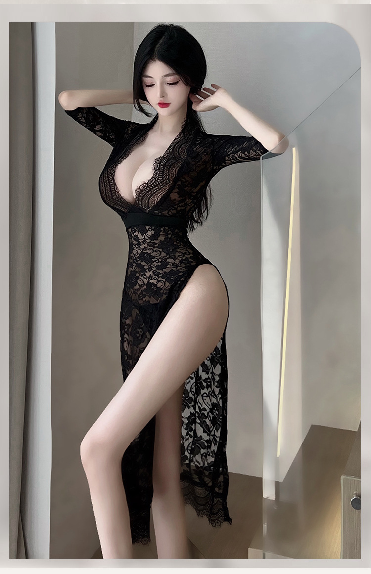 Ailurulu Factory Direct Sales Sexy Lingerie Sexy Long Dress Lace Temptation High Slit Mature Woman Hot Passion 8203