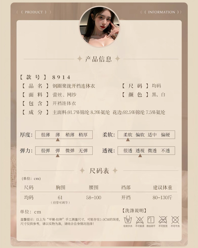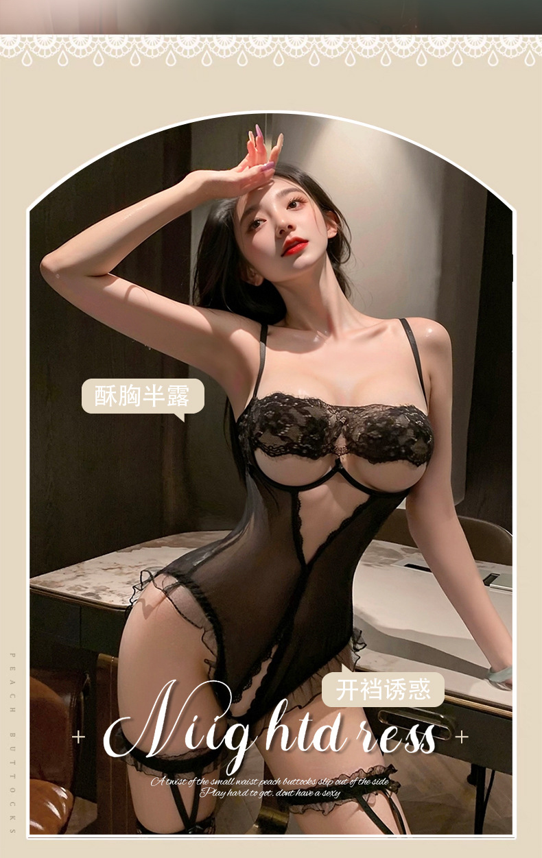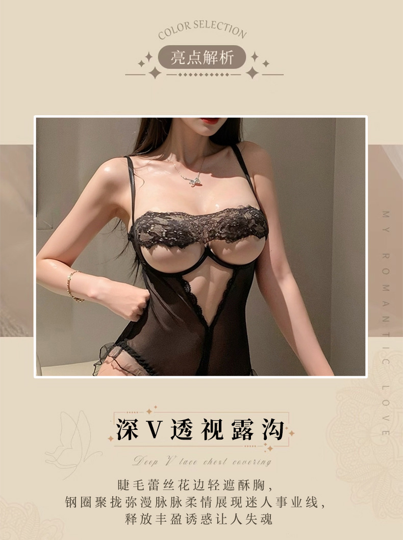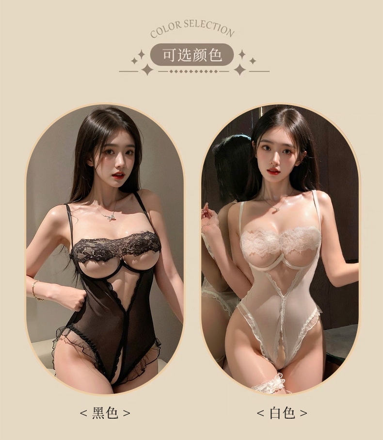 Sexy Lingerie, Sexy Lace Cut Out Breast-Revealing Jumpsuit, Uniform Pajamas, Temptation-Free Flirting Sexy Clothes 8395