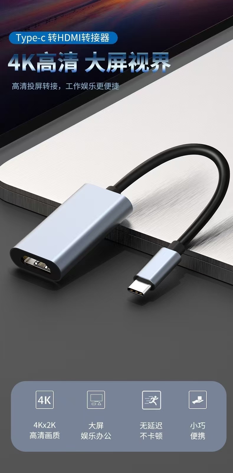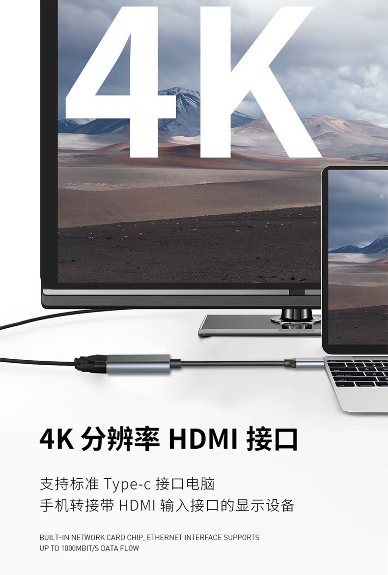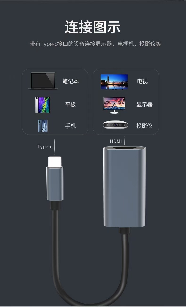 Type-c to hdmi conversion cable 4k aluminum alloy