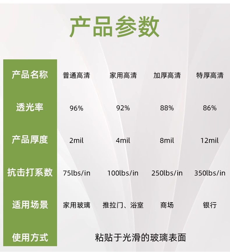 Glass Anti-explosion Film Anti-shattering Bathroom Living Room Bedroom Thickened Self-adhesive Transparent Anti-shattering Tempered Film Engineering Anti-explosion Film