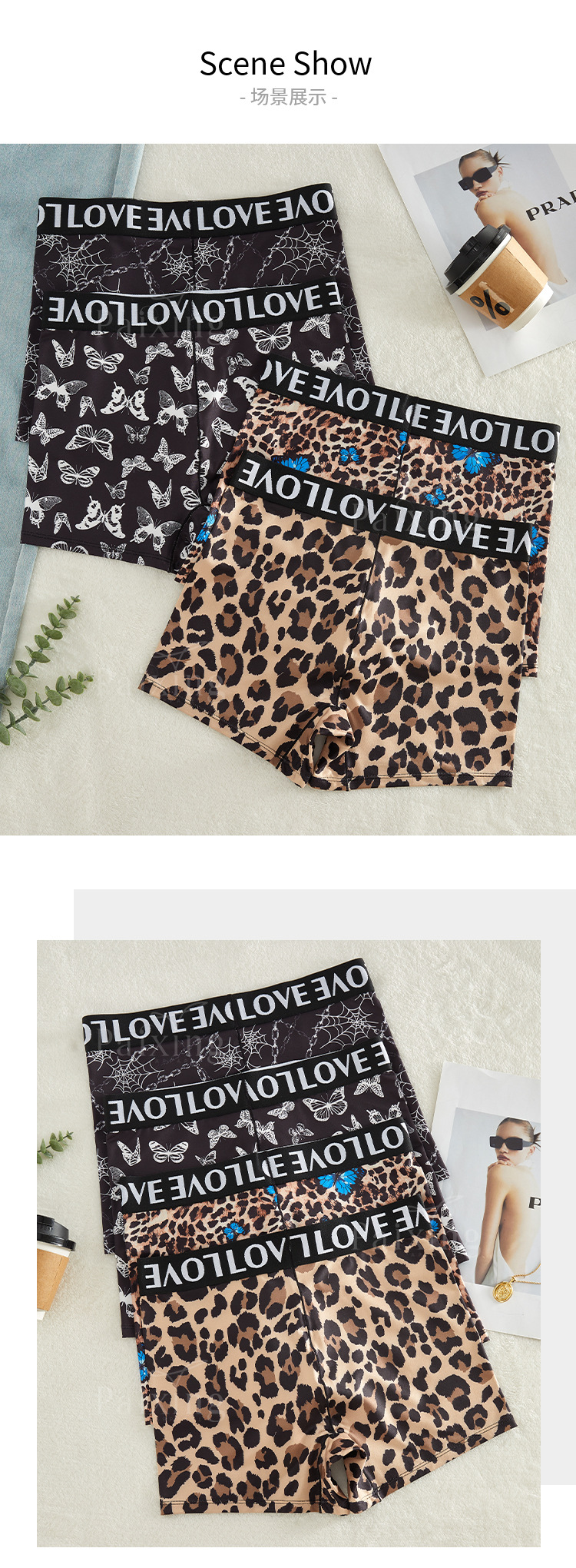 Choice Letter Ribbon Stitching Thin Quick-drying Women's Boxers Personalized Printed High Waist plus size Breathable Pure Cotton Crotch Panties