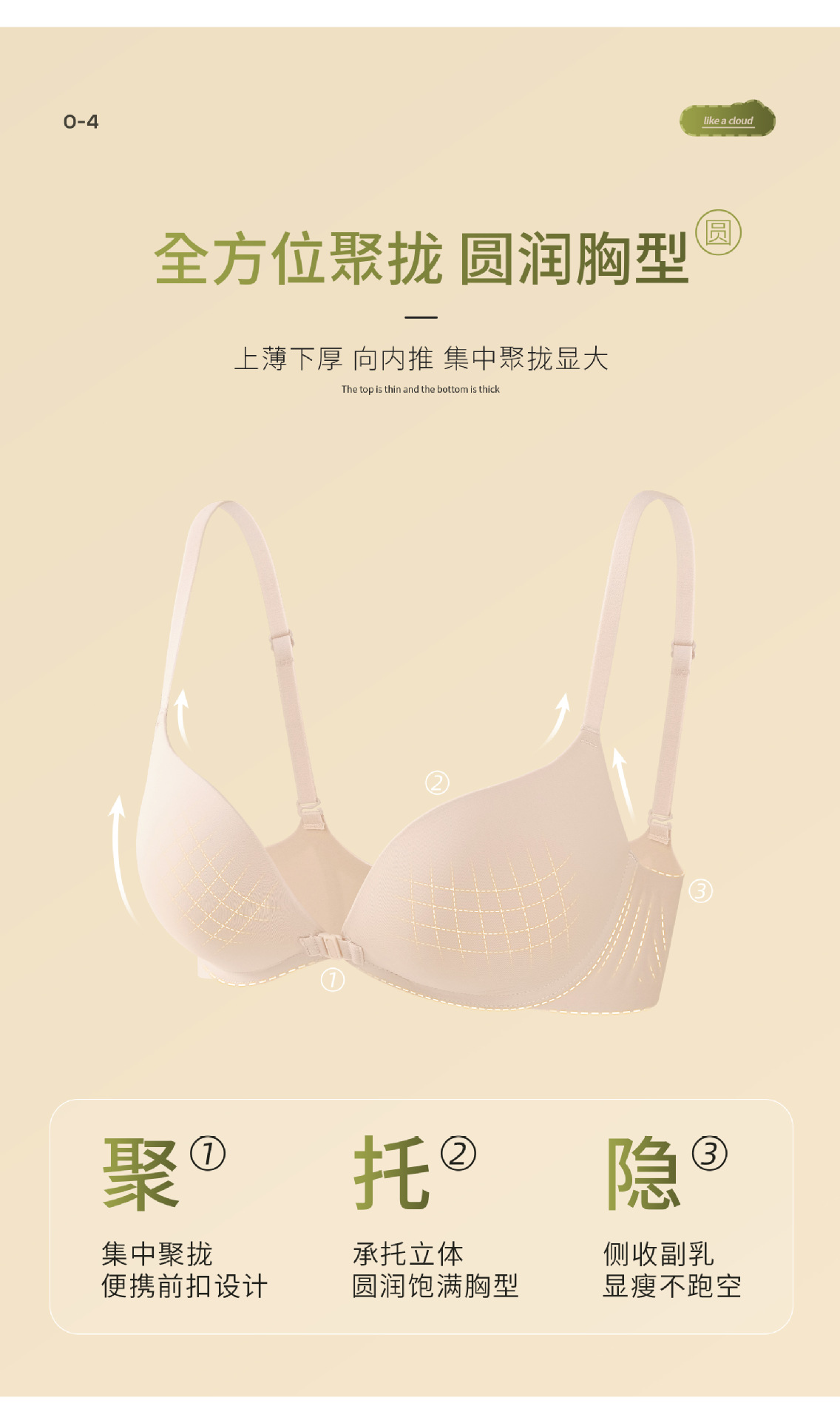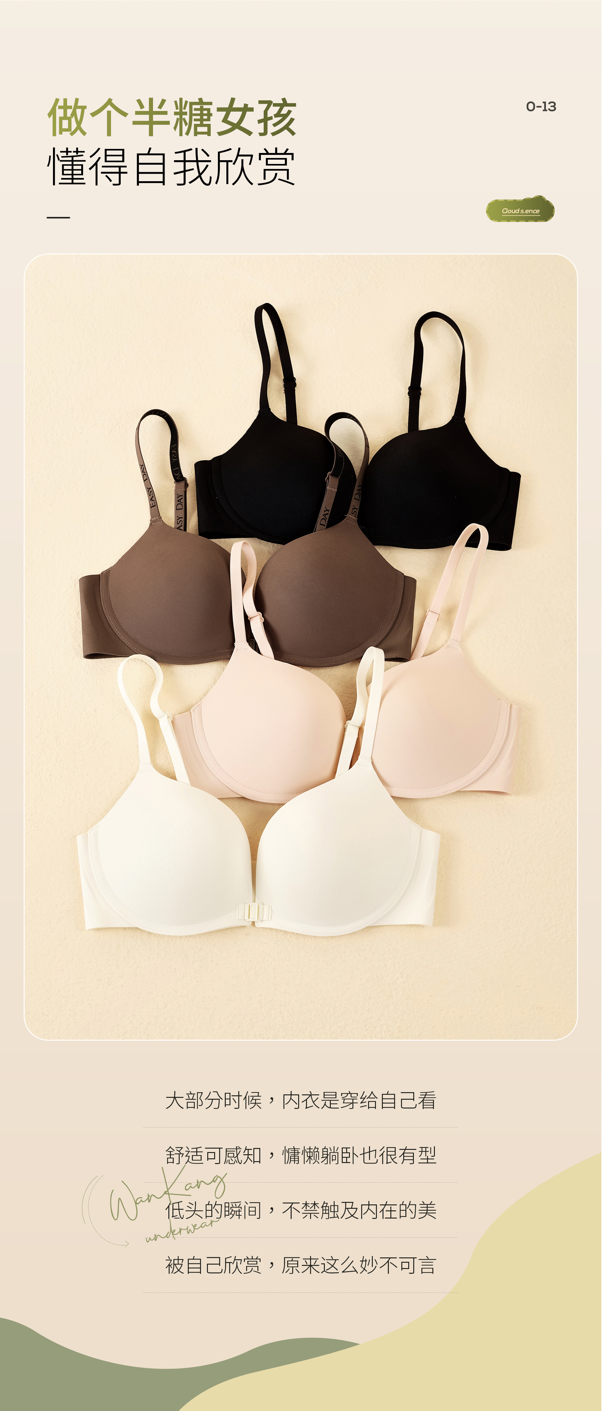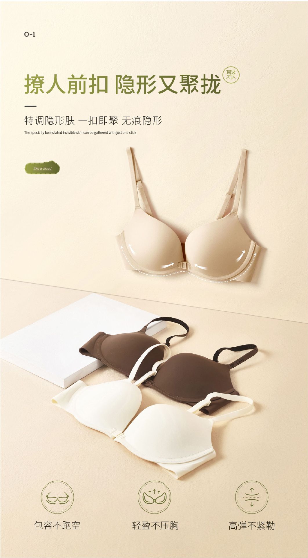 Liquid Foundation Seamless Front Buckle Invisible Push-up Underwear Women's Portable Jelly Gel Insensitive Round Small Chest Showy Bra