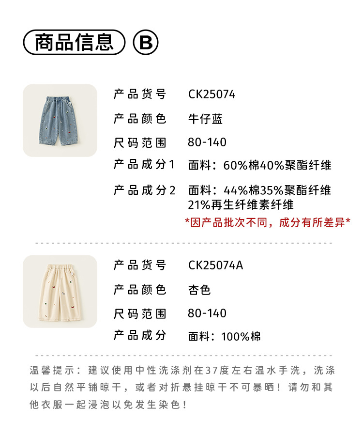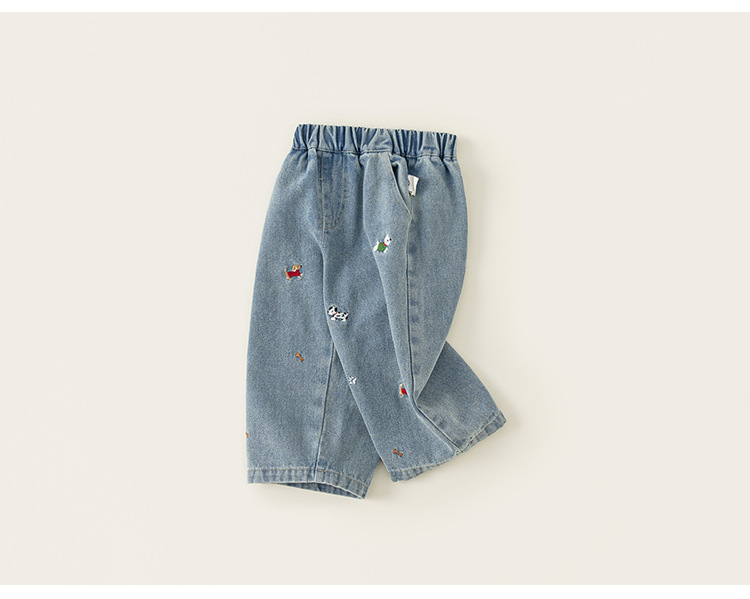 Youbao Children's Clothing Girls' Jeans Spring New Cartoon Baby Pants Little Girl Long Pants Children's Wide-Leg Pants Trendy
