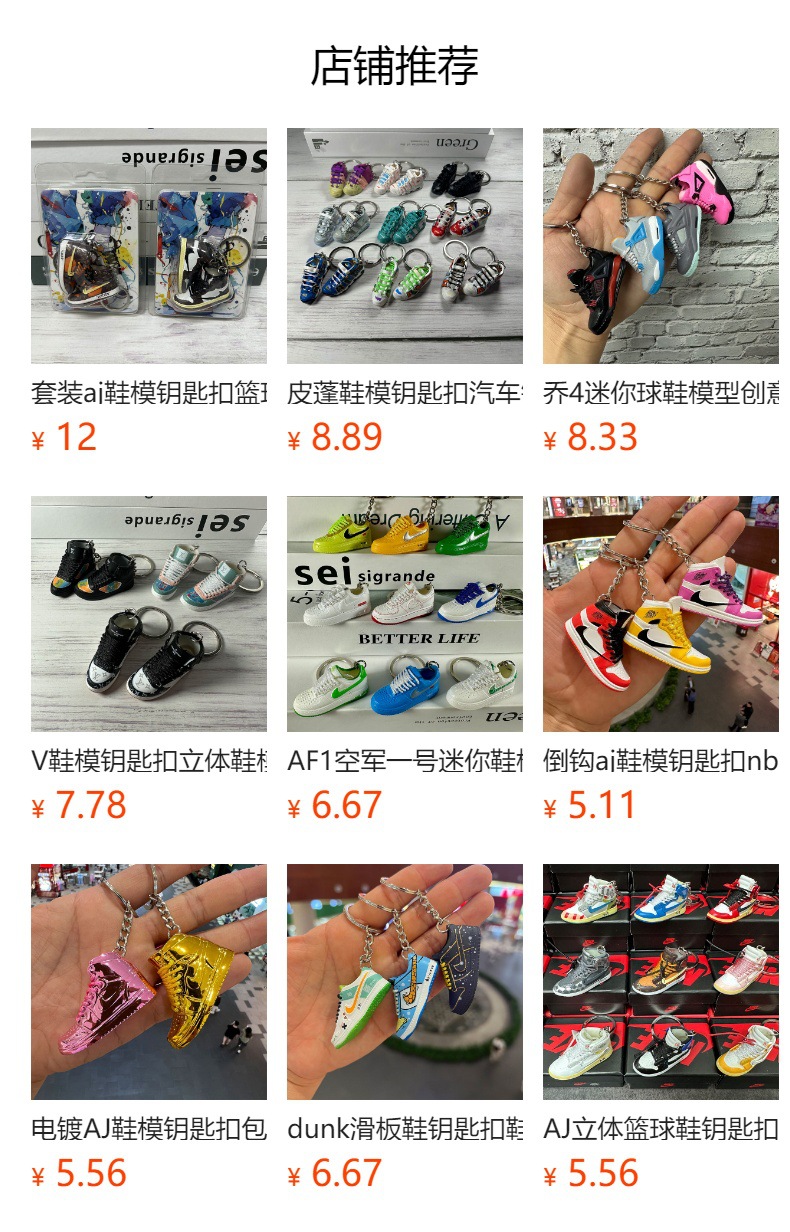 Choice V shoe mold key chain three-dimensional shoe mold creative L bag car pendant foreign trade cross-border jewelry pendant in stock wholesale