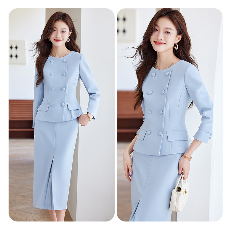 Choice High-grade Blue Suit suit Dress Suit Female Small Fragrant Style Elegant Celebrity Professional Host Dress Overalls